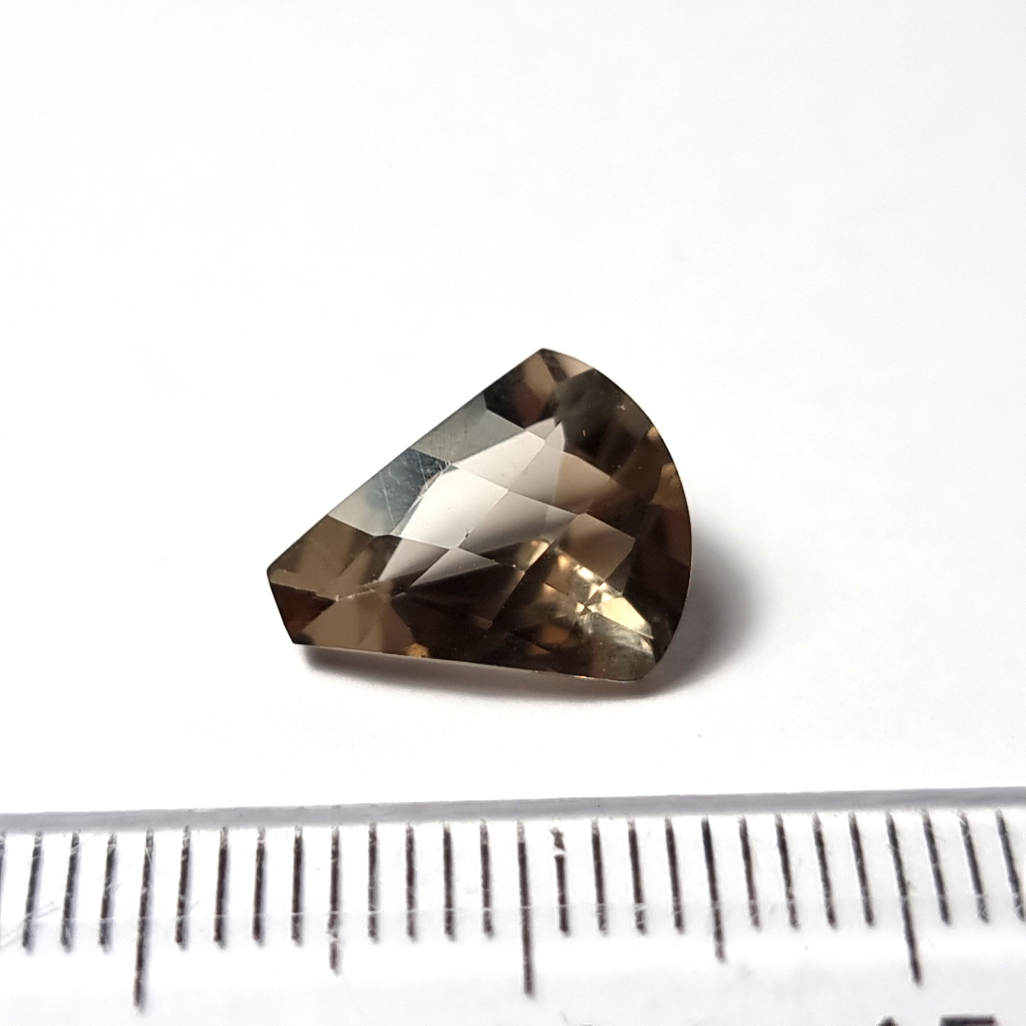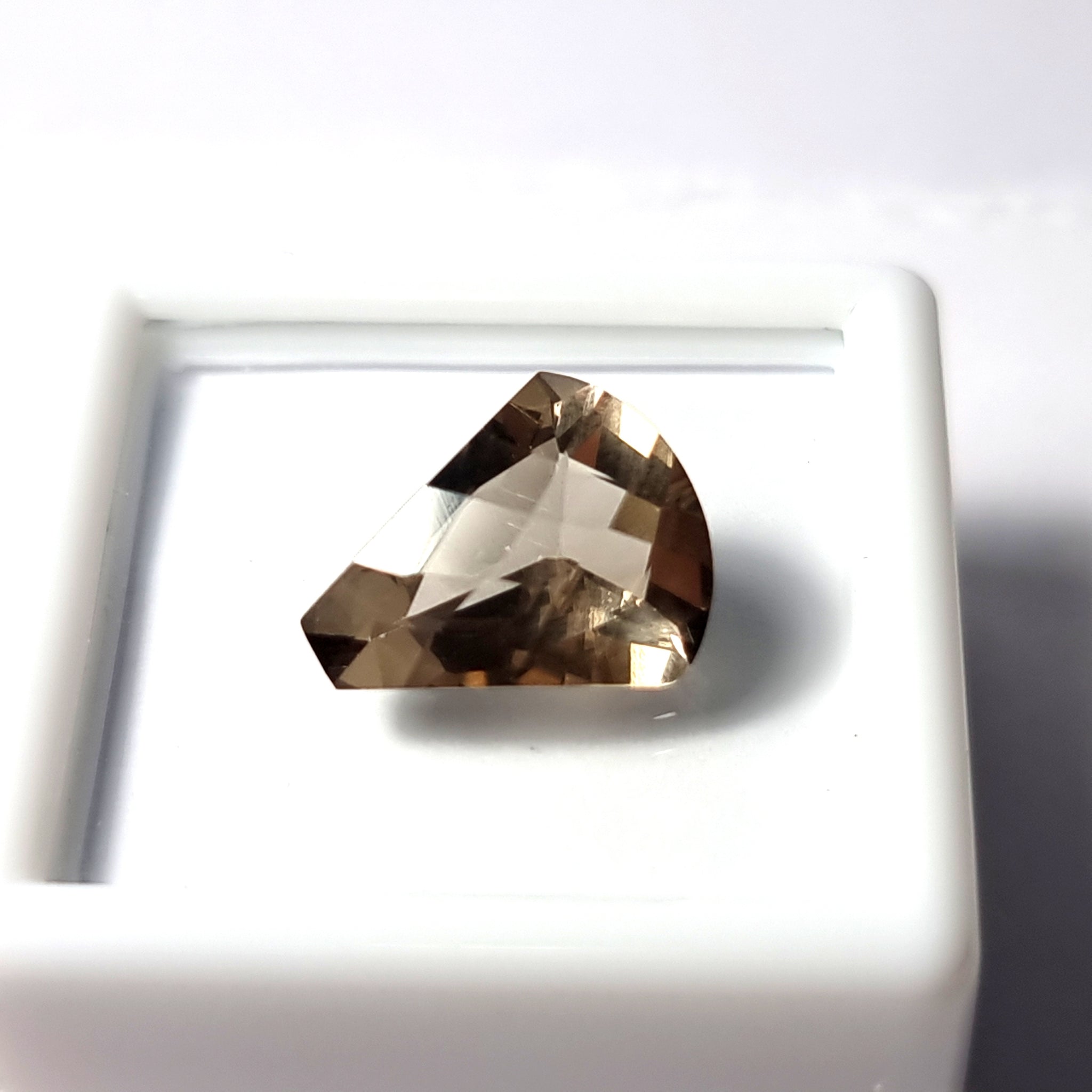 Original Cuarzo Fumé claro de excelente pureza y tallaOrigen: BrasilTallado y pulido en BarcelonaTalla: Facetado FancyMedida: 12'2x10x6mm