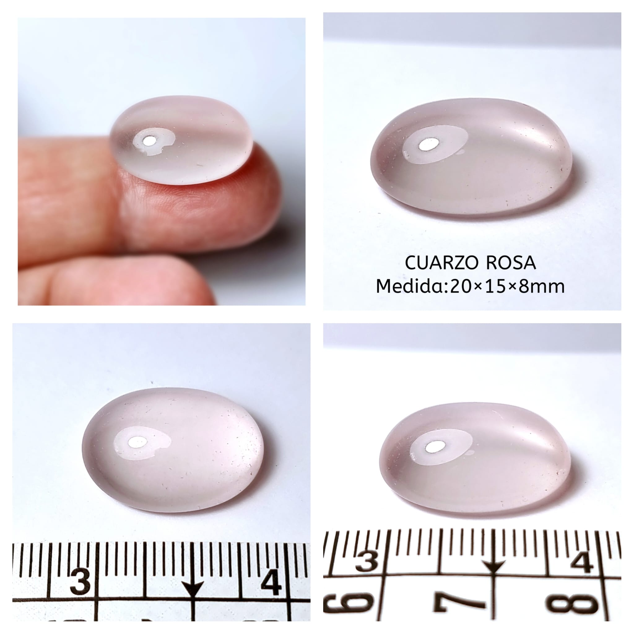 Bonito Cuarzo RosaOrigen: BrasilTallado y pulido en BarcelonaTalla: Cabujón ovalMedida: 20 x 15 x 8 mm