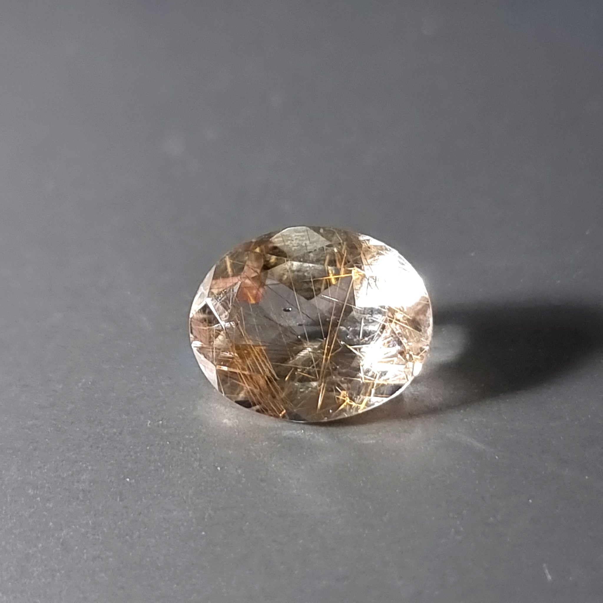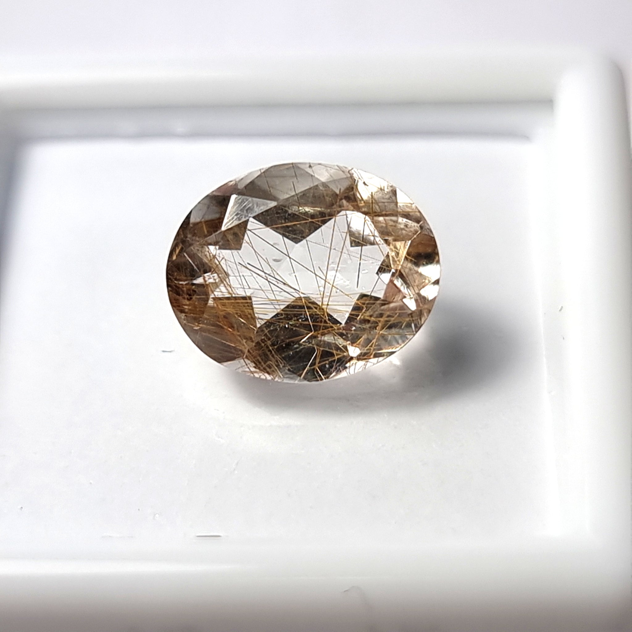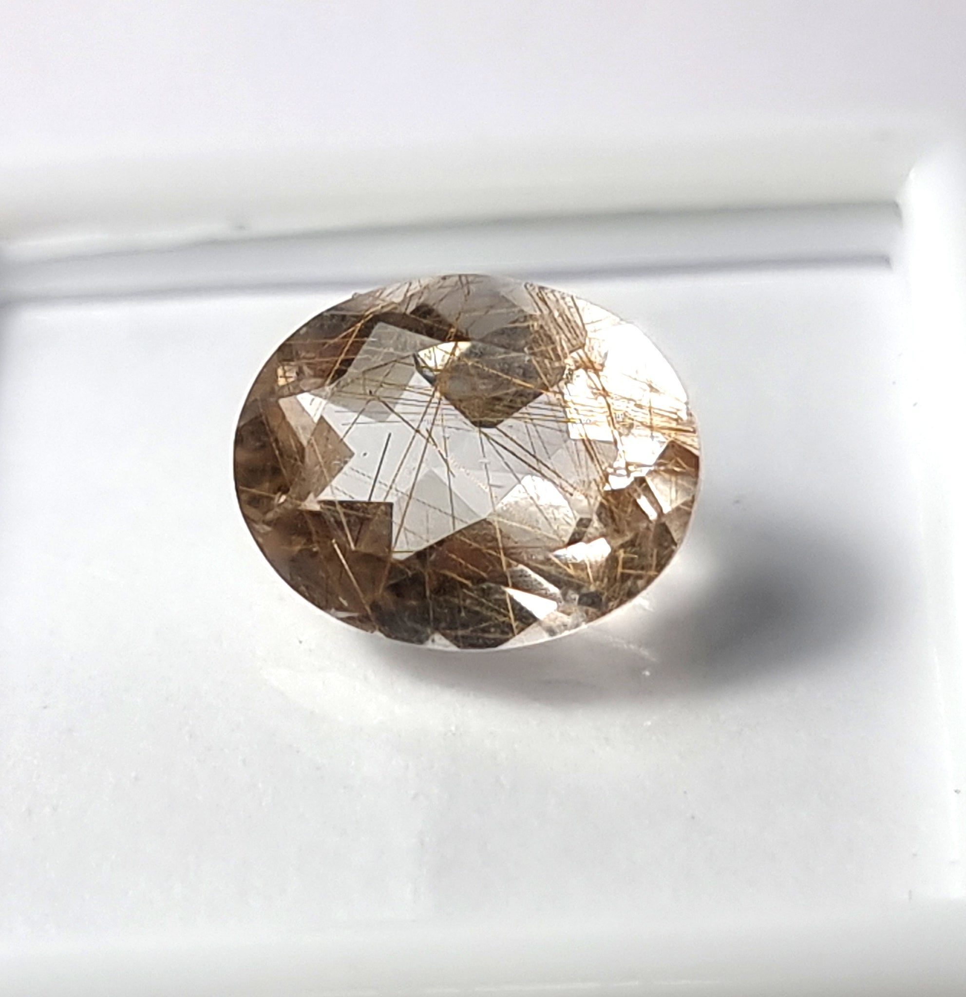 Bonito Cuarzo Rutilado. Rutilos finos doradosOrigen: BrasilTallado y pulido en BarcelonaTalla: Oval facetadoMedida: 10x8x5mm