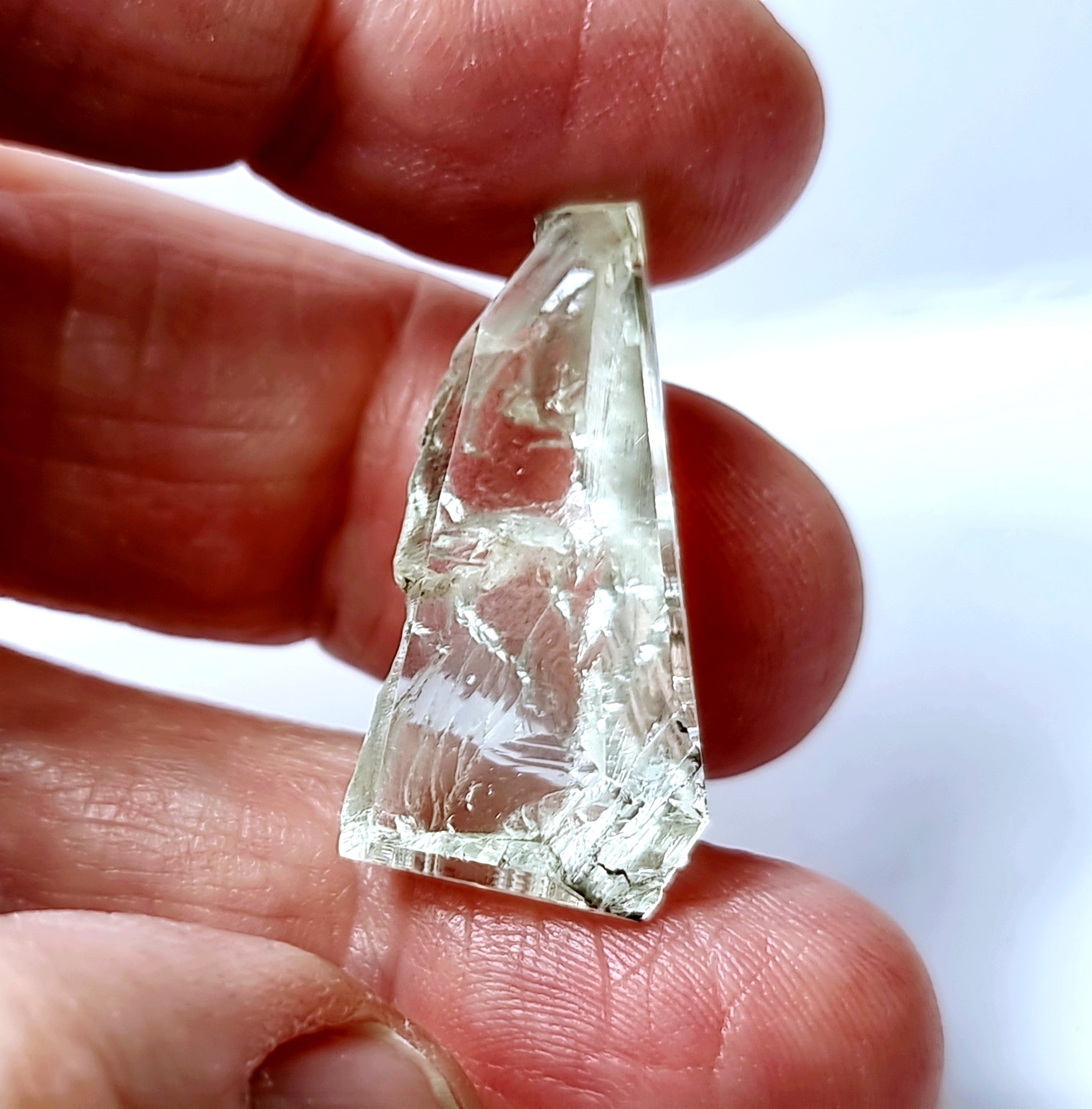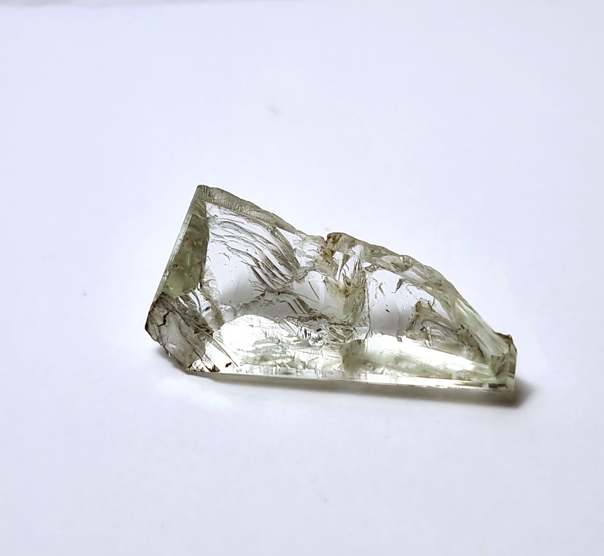 Prasiolita de talla excelente. Medio espejo, medio en bruto