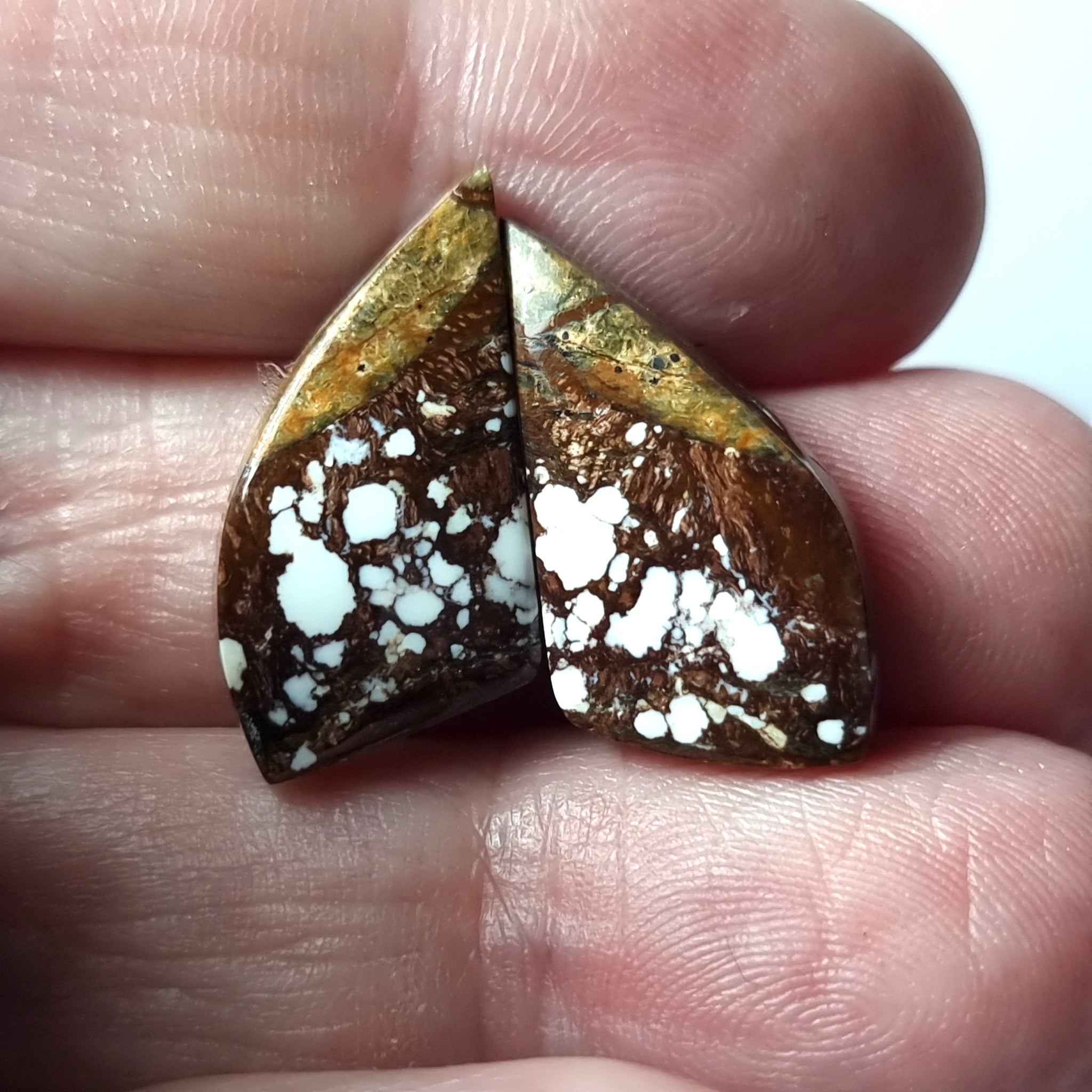 Jaspe de colores únicos y excelente pulido Origen: Sudáfrica Tallado y pulido en Barcelona Talla: Cabujón cometa irregular Medida: 23x12x4mm Precio unitario Cantidad disponible: 2