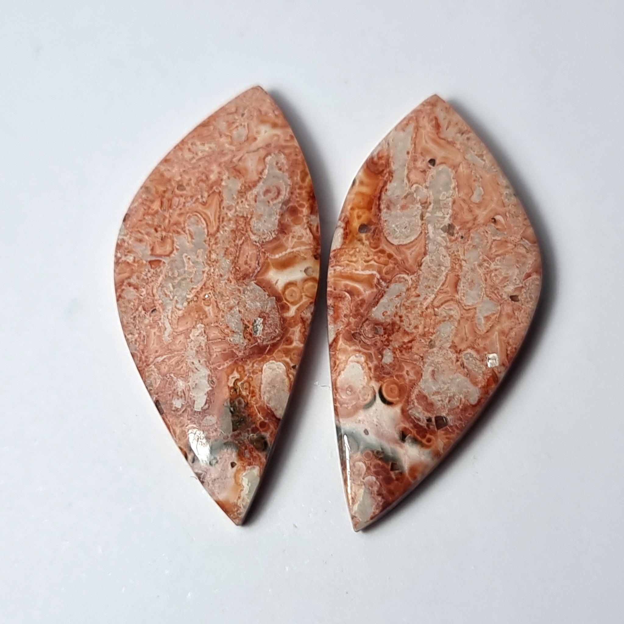 Jaspe en tonos naranjas aglomeradosOrigen: MadagascarTallado y pulido en BarcelonaTalla: Cabujón rombo fancyMedida: 36x16mmPrecio unitarioUnidades disponibles: 2
