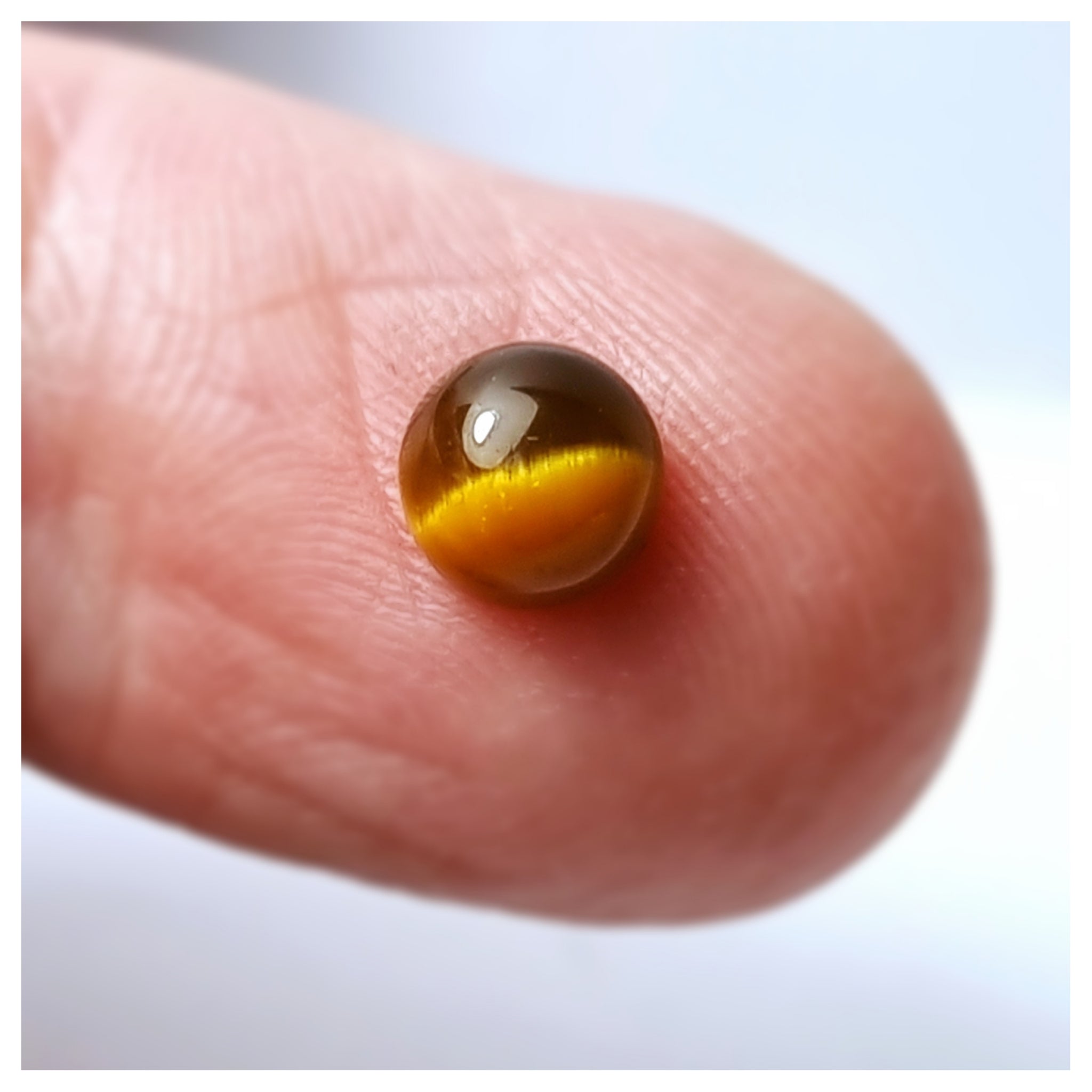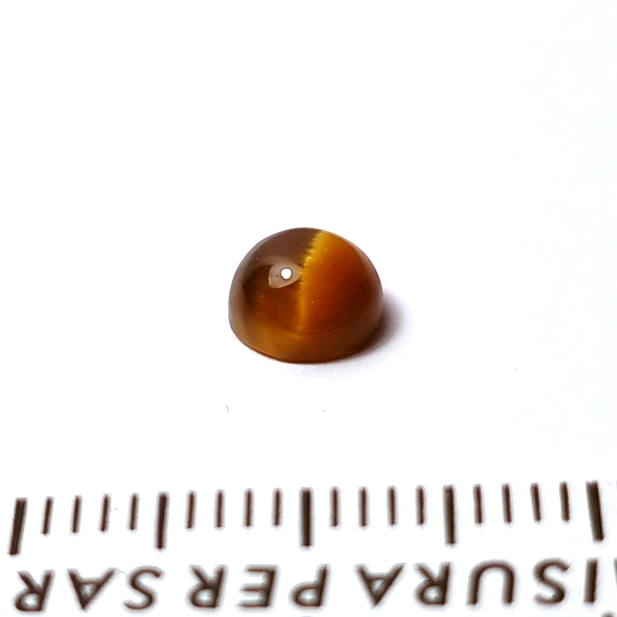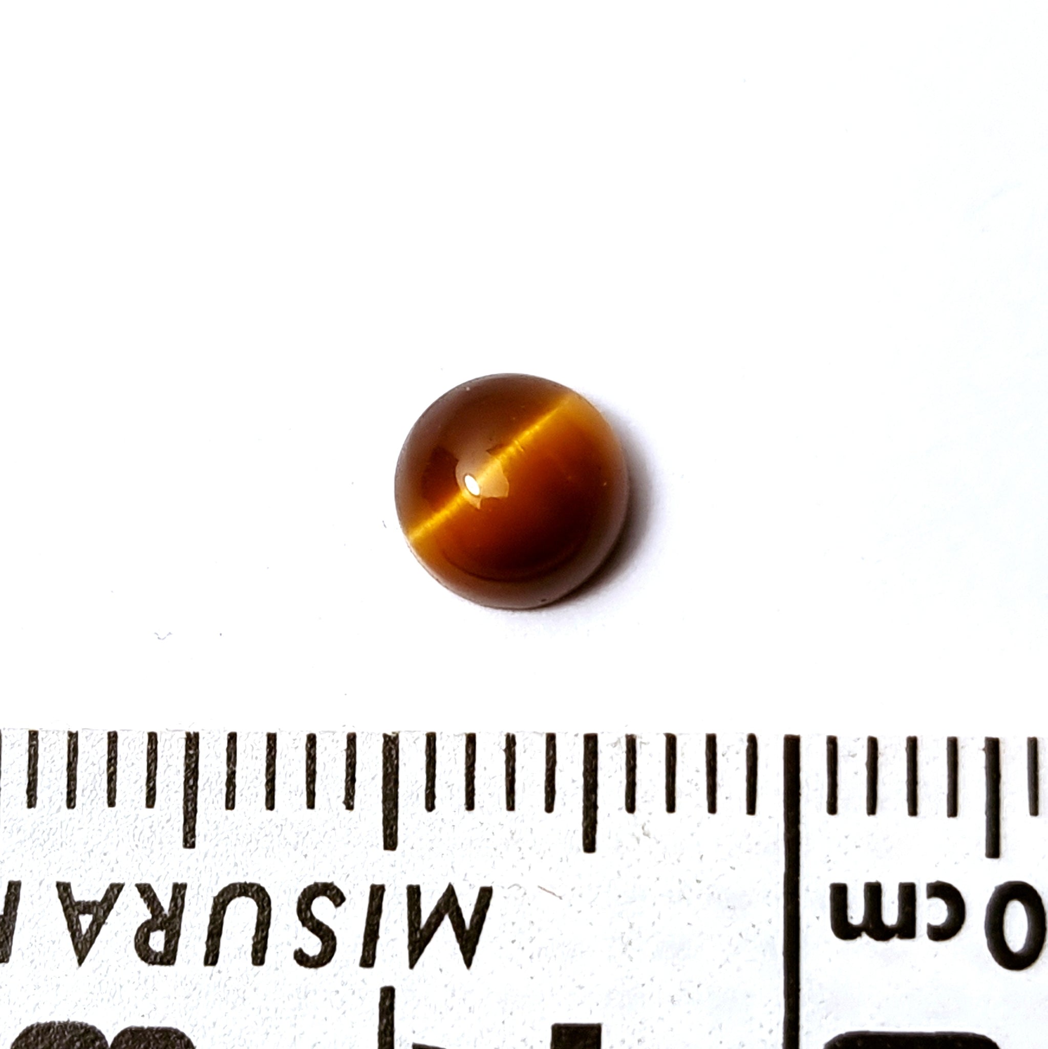 Bonito Ojo de Tigre de bonito colorOrigen: ÁfricaTallado y pulido en BarcelonaTalla: Cabujón redondoMedida: 6'00x3'10mm