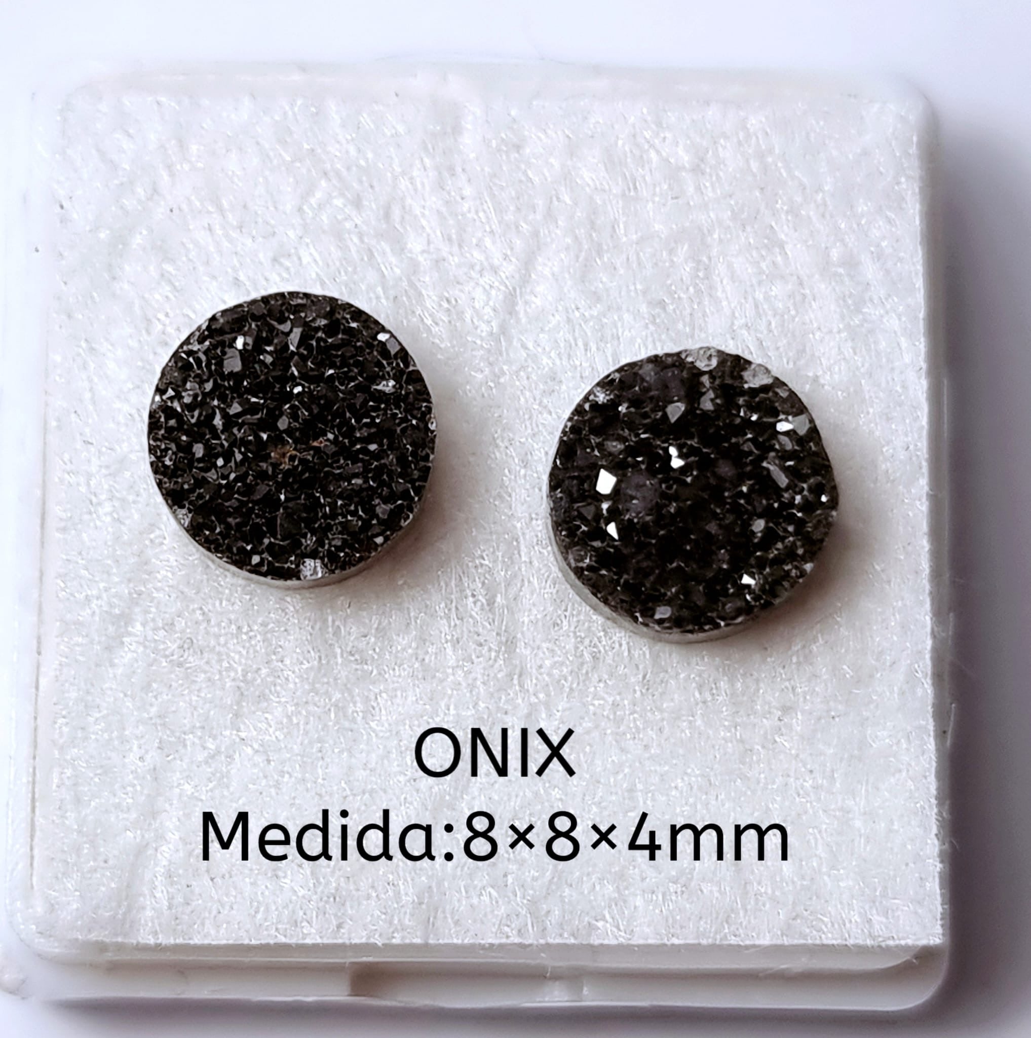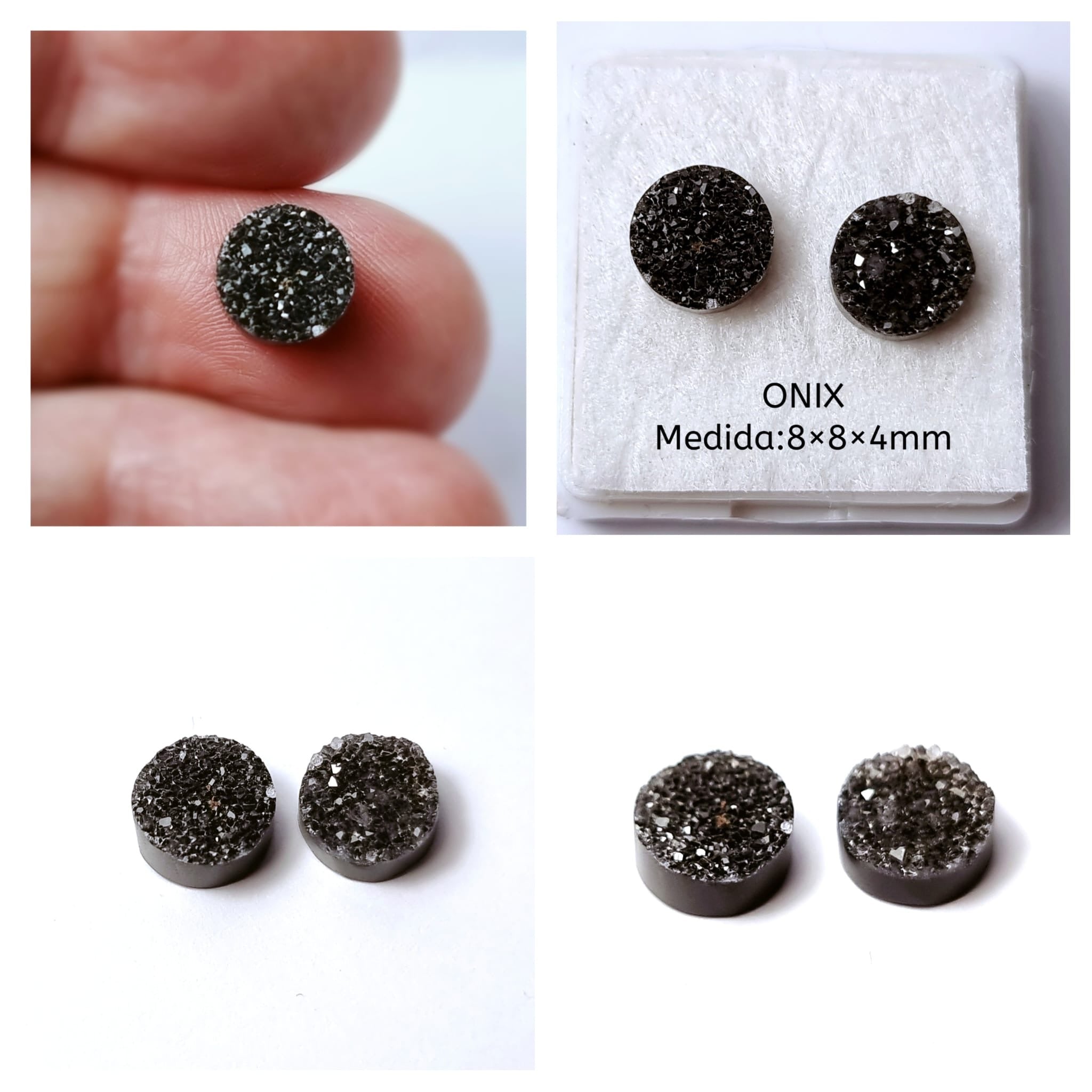 Ónix con bonita cristalización Origen: Sudáfrica Tallado y pulido en Alemania Talla: Redonda Medida: 8 x 8 x 4 mm Precio unitario Unidades disponibles: 3 La cristalización de la piedra, al ser natural, puede variar.