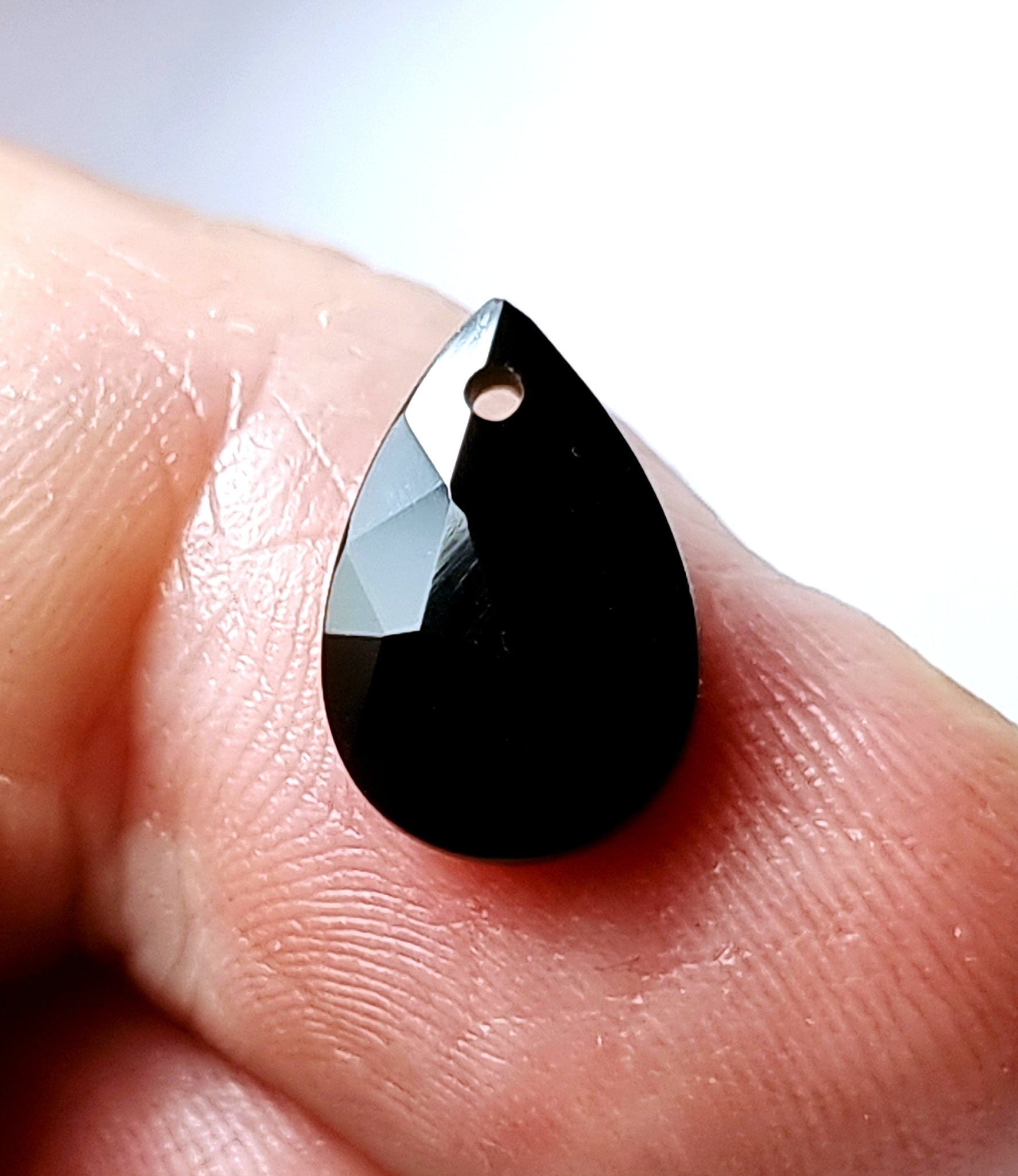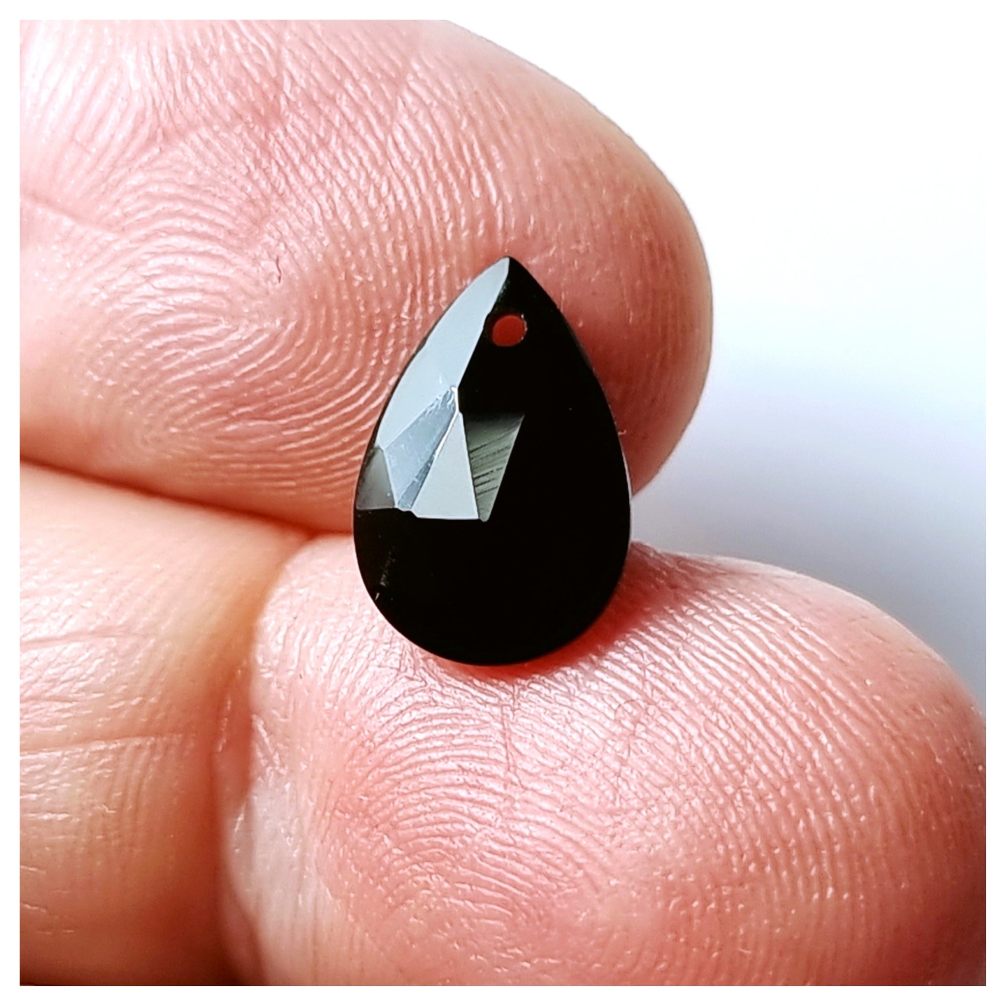 Original Ónix de excelente talla. PerforadoOrigen: ÁfricaTallado y pulido en BarcelonaTalla: Facetado pera doble brioletteMedida: 12×8×3'5mm