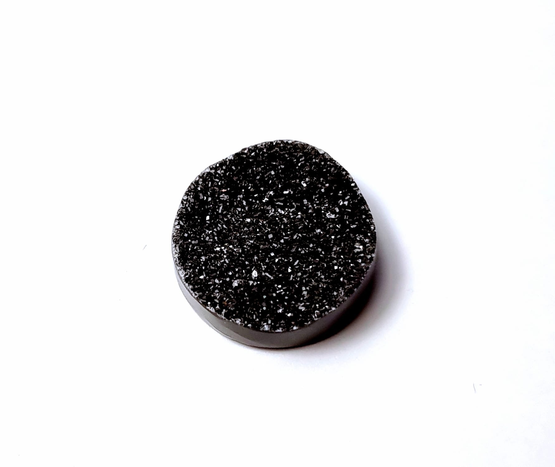 Ónix con bonita cristalización Origen: Sudáfrica Tallado y pulido en Alemania Talla: Redonda Medida: 16 x 16 x 4 mm Precio unitario Unidades disponibles: 4 La cristalización de la piedra, al ser natural, puede variar.