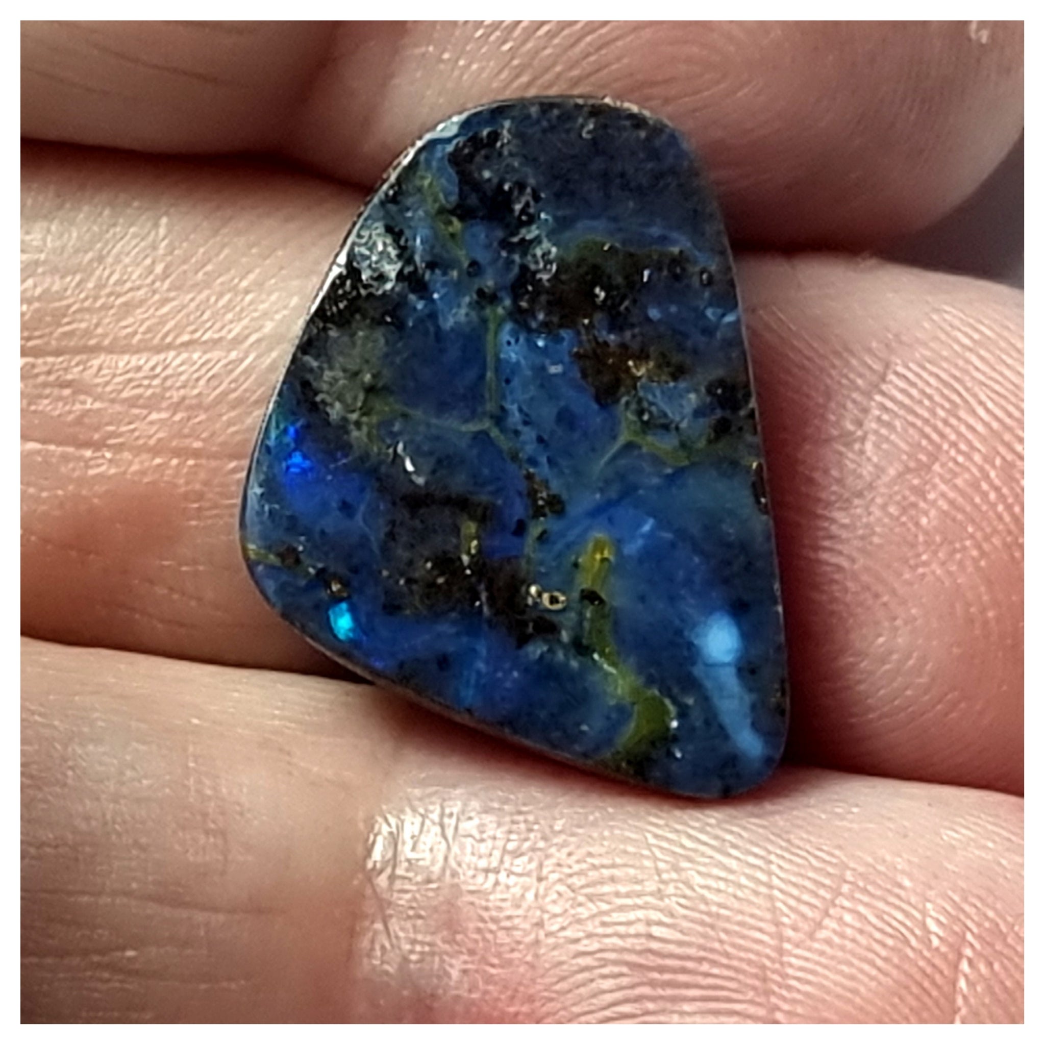 Original Ópalo Australiano de tonos azul oscuro. Pulido espejo excelente Origen: Australia Tallado y pulido en Barcelona Talla: Cabujón fancy Medida: 20x15x4mm