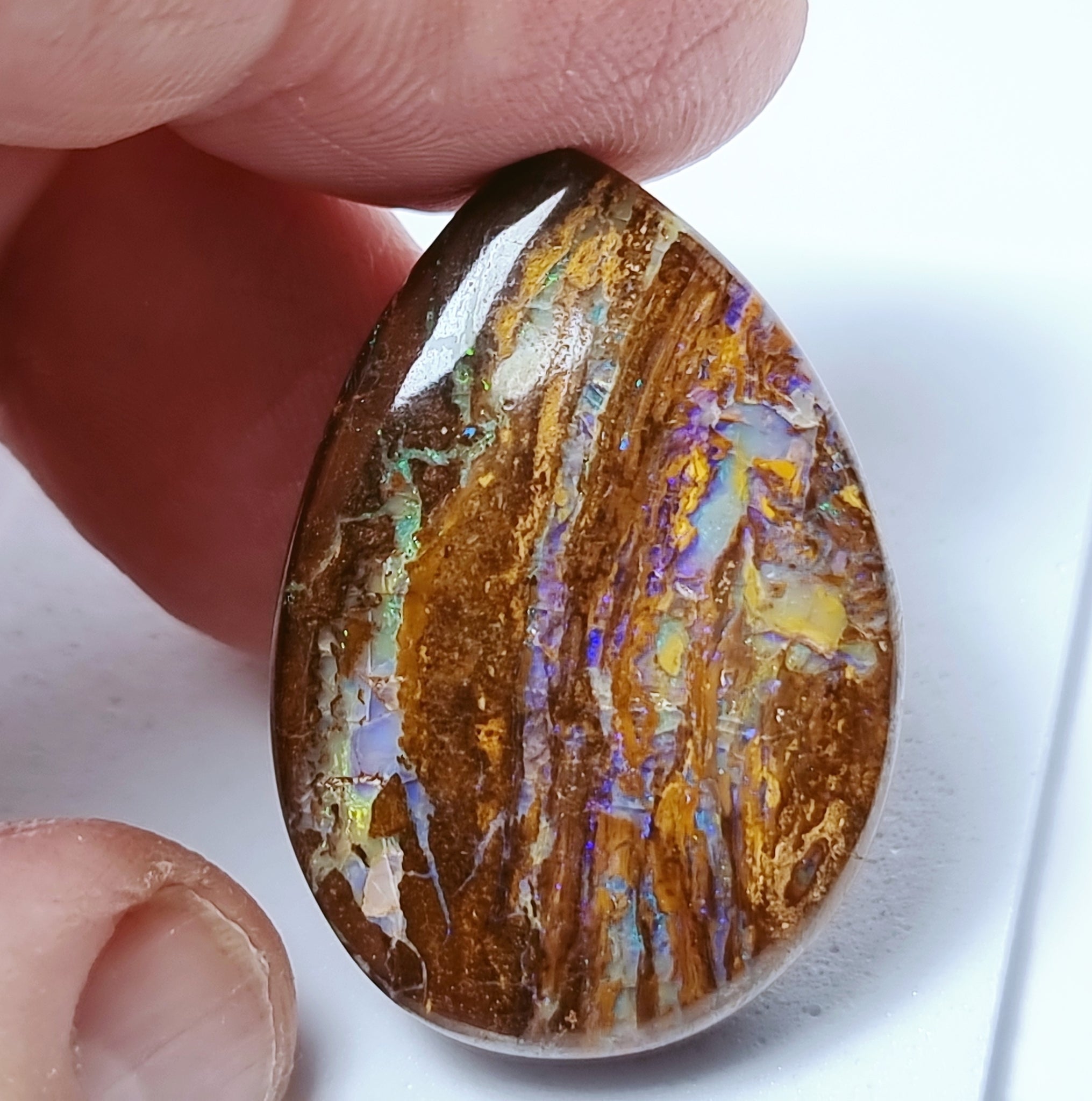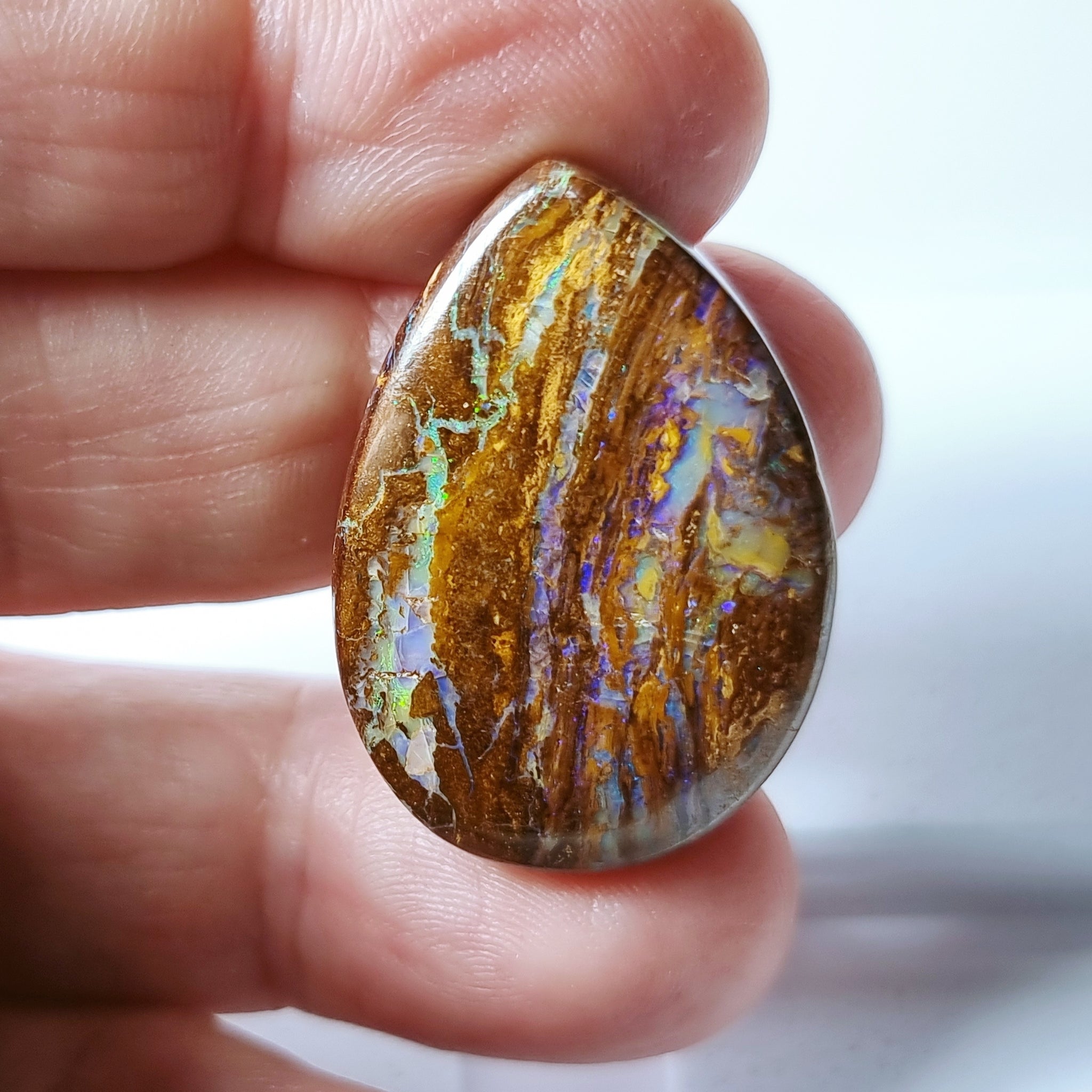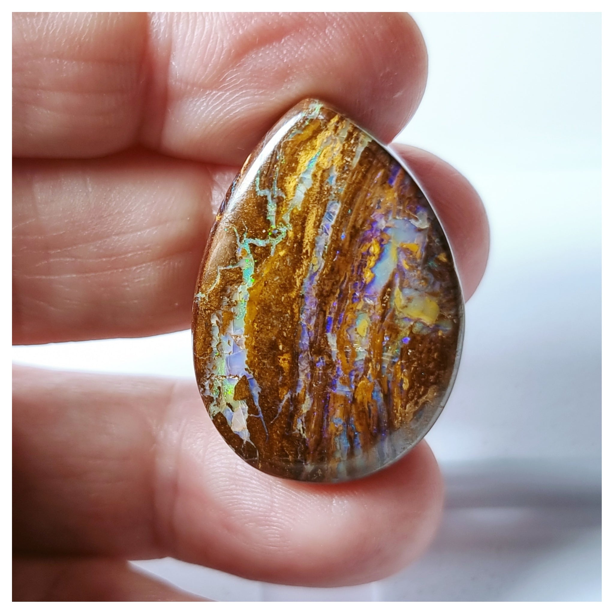 Original Ópalo Australiano con un original dibujoOrigen: AustraliaTallado y pulido en BarcelonaTalla: Cabujón pera fancyMedida: 31 x 22 x 8 mm