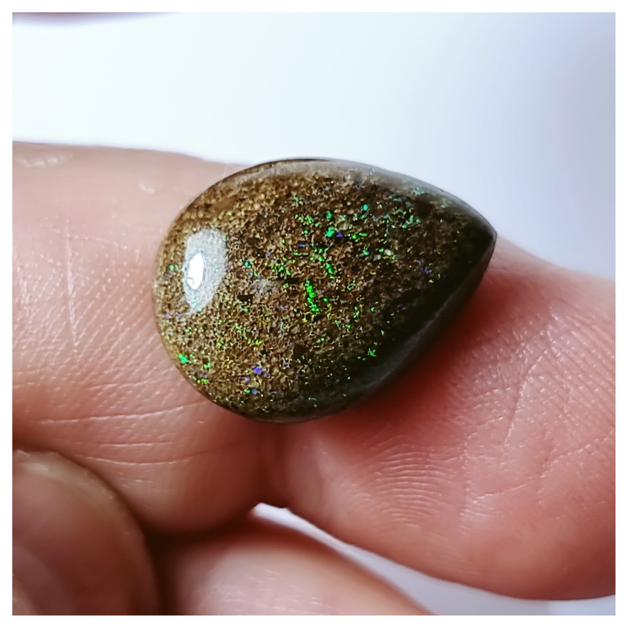 Original Ópalo Australiano con bonitas xispas de azul y verdeOrigen: AustraliaTallado y pulido en BarcelonaTalla: Cabujón lágrimaMedida: 16x12x4mm