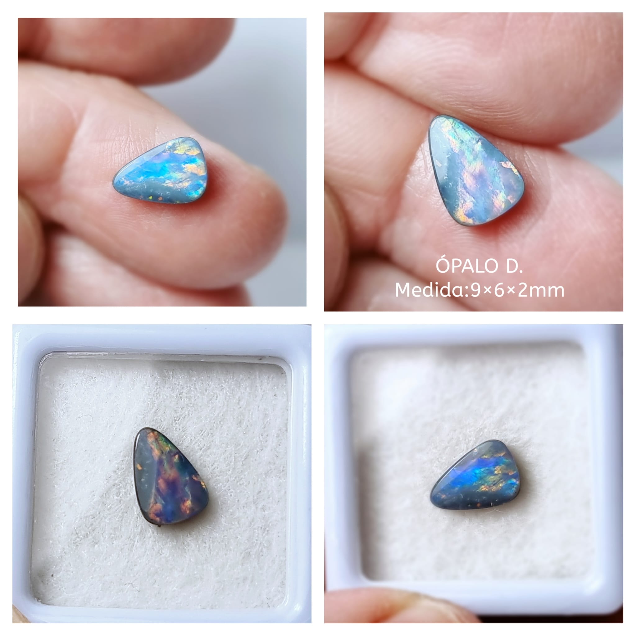 Impresionante Ópalo dublet Australiano con increíble variedad de colores Origen: Australia Tallado y pulido en Australia Talla: Fancy Medida: 9 x 6 x 2 mm