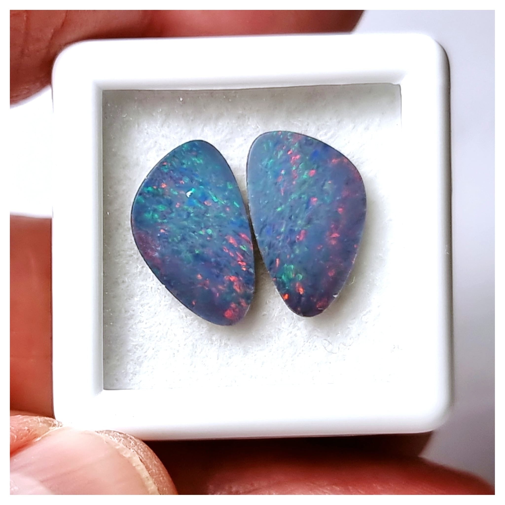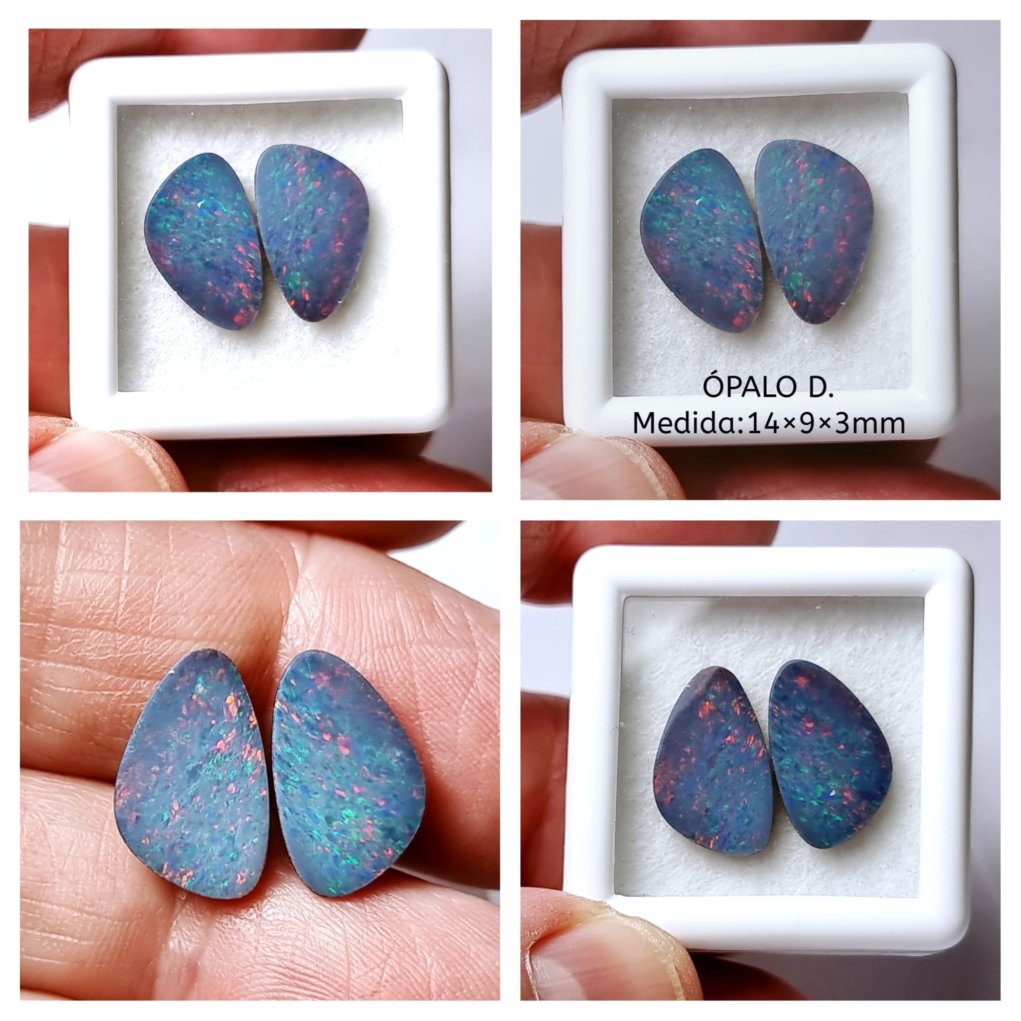 Espectacular pareja de Ópalos dublet Australianos con increíble variedad de colores Origen: Australia Tallado y pulido en Australia Talla: Fancy Medida: 14 x 9 x 3 mm