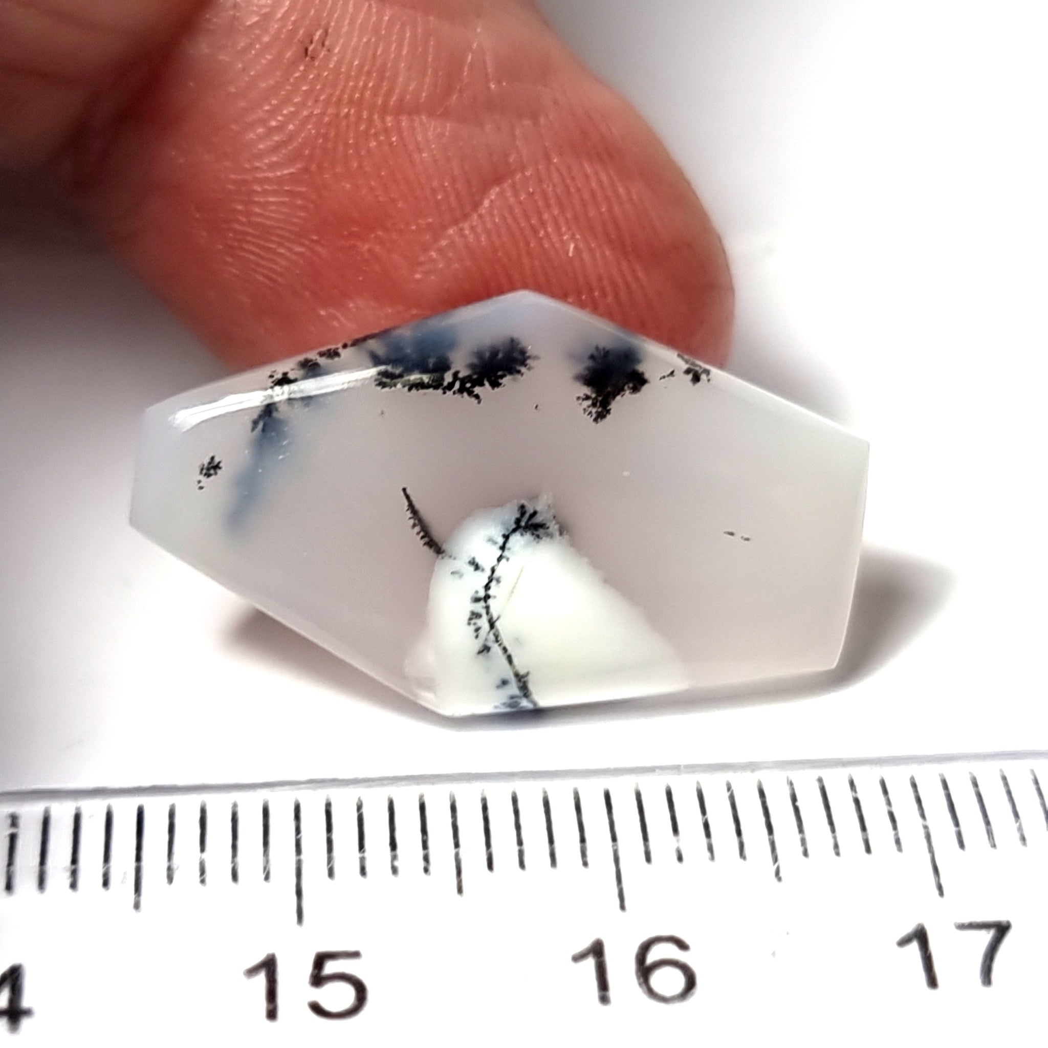 Ópalo dendrítico con un curioso y original dibujo. Origen: México Tallado y pulido en Barcelona Talla: Cabujón Fancy irregular Medida: 24'70x14'40x4'5mm