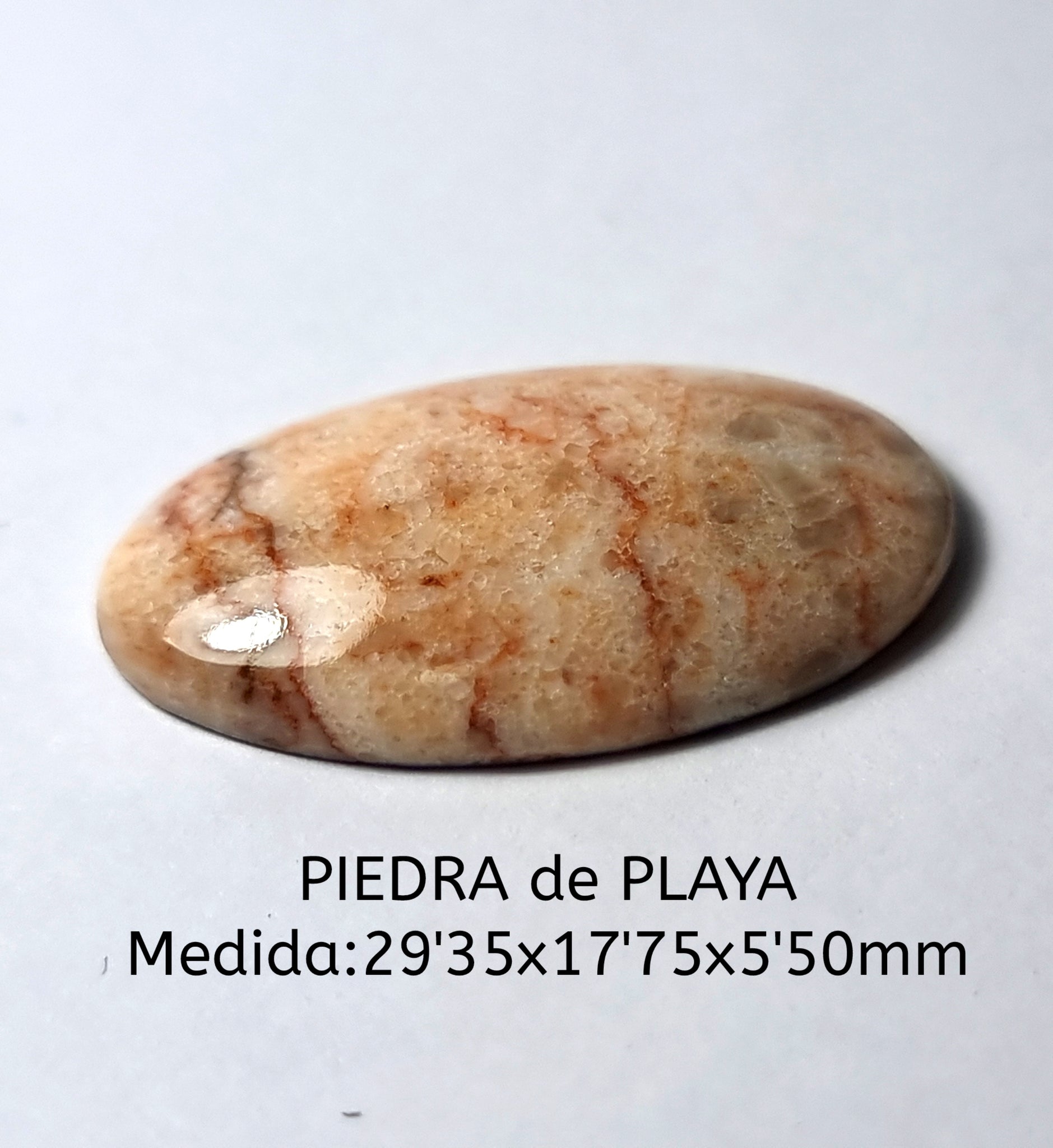 Bonita piedra de playa en diferentes tonos beige y marrón Origen: Calella (Cataluña) Tallado y pulido en Barcelona Talla: Cabujón oval Medida: 29'35x17'75x5'50mm