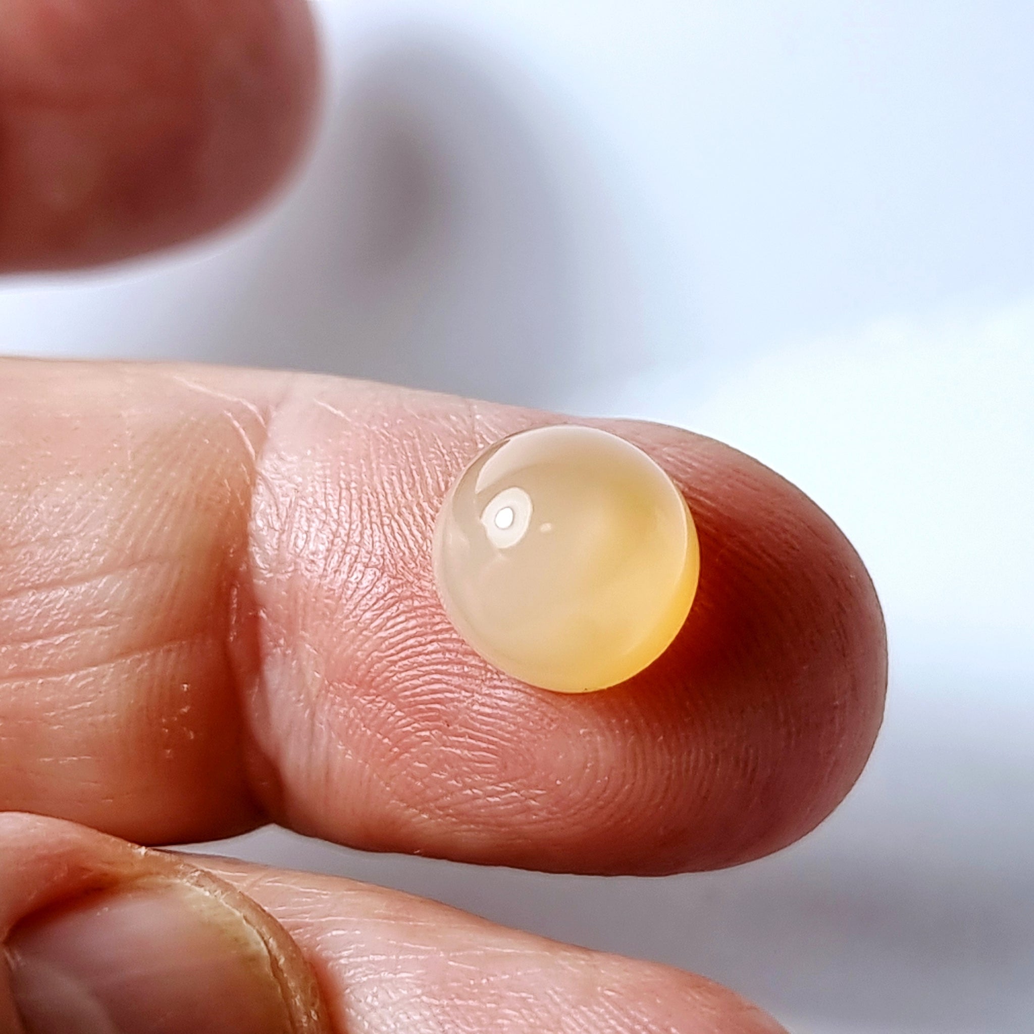Bonito cabujón de Piedra Luna naranjaOrigen: Sri LankaTallado y pulido en BarcelonaTalla: Cabujón balaMedida: 8'10×7'95mm