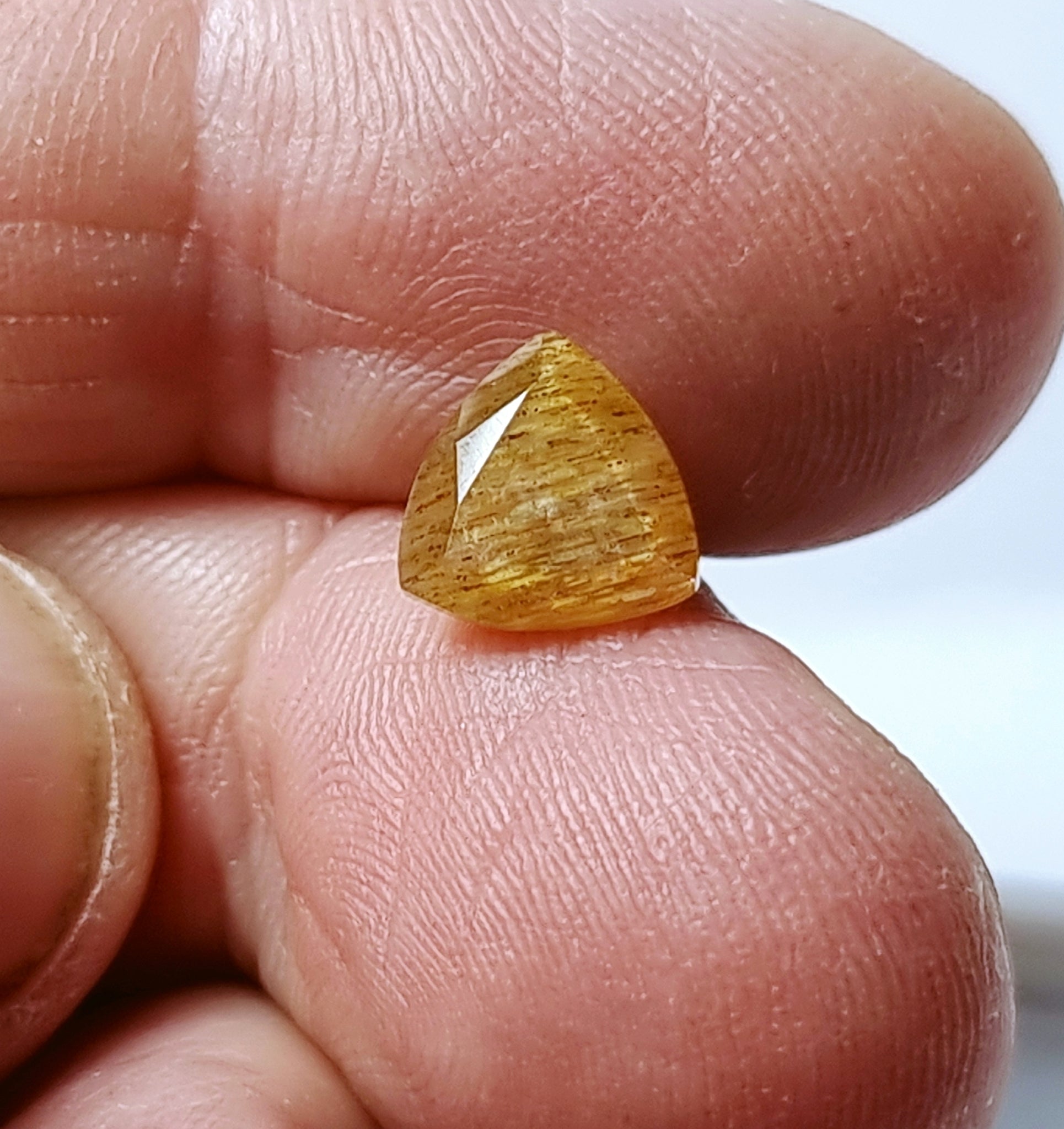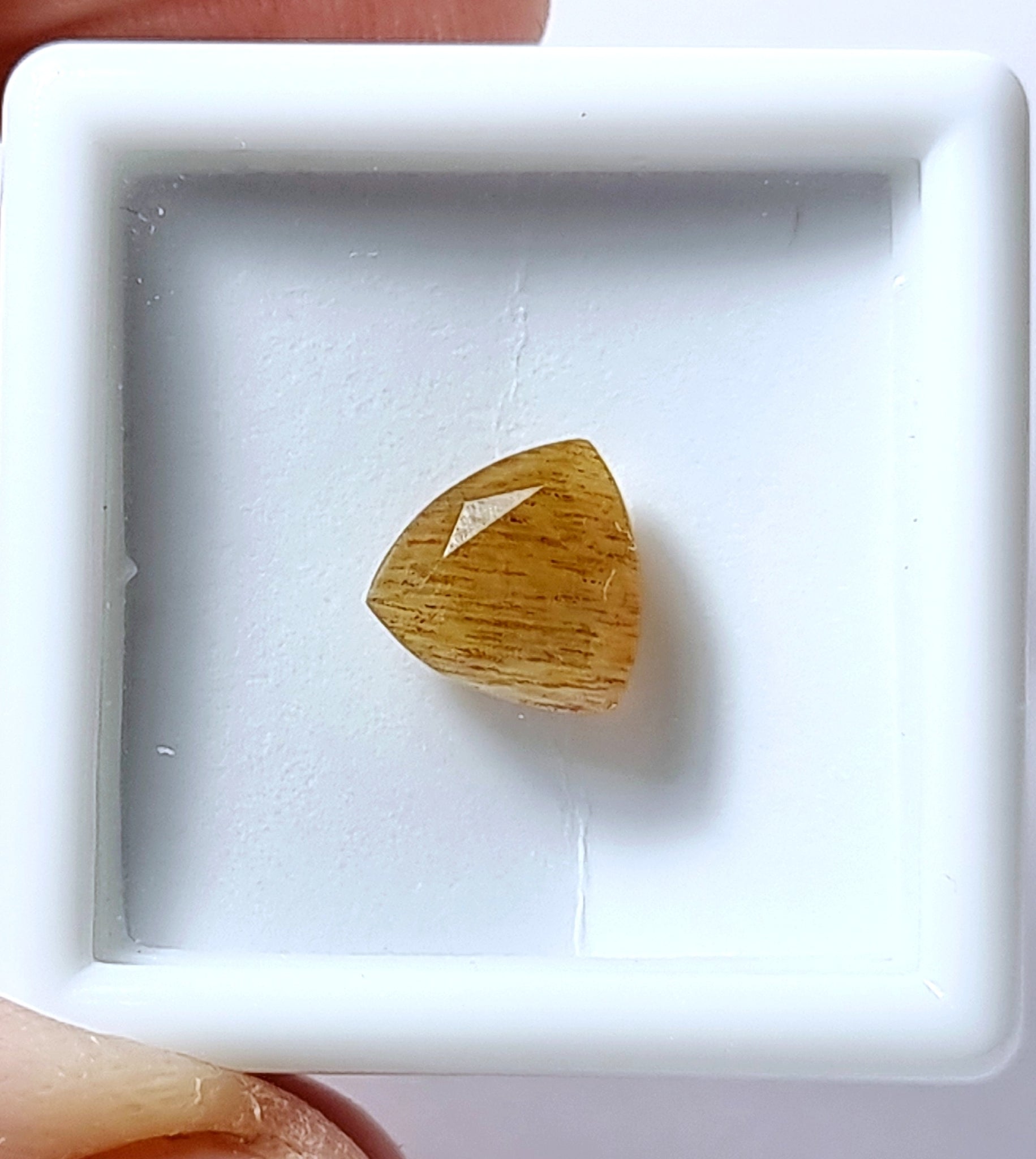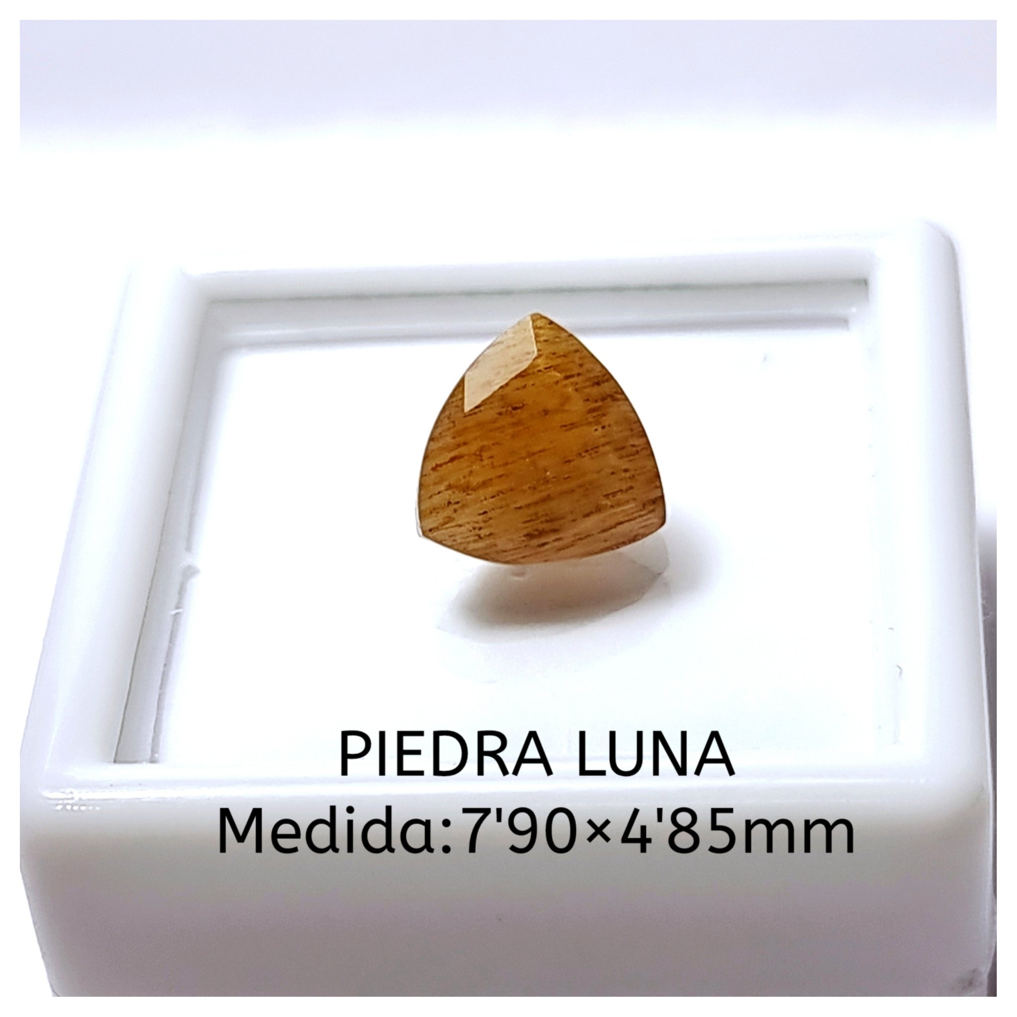 Bonita Piedra Luna con inclusiones y brillo en movimientoOrigen: Sri LankaTallado y pulido en BarcelonaTalla: Facetado trillónMedida: 7'90×4'85mm
