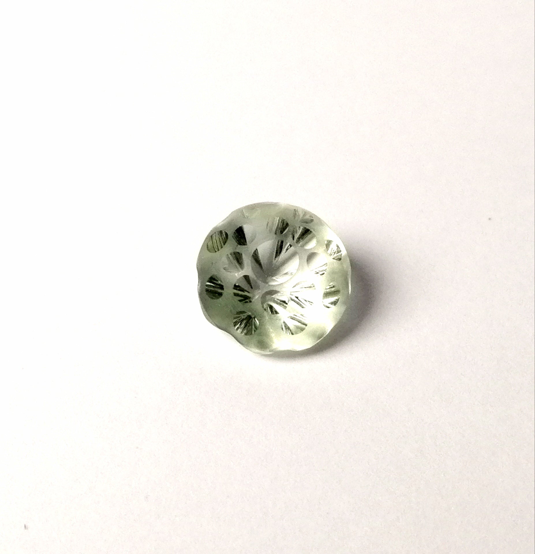 Excepcional amatista verde de talla única medio pulida y medio mateOrigen: BrasilTallado y pulido en AlemaniaTalla: UmbrellaMedida: 8 x 8mm