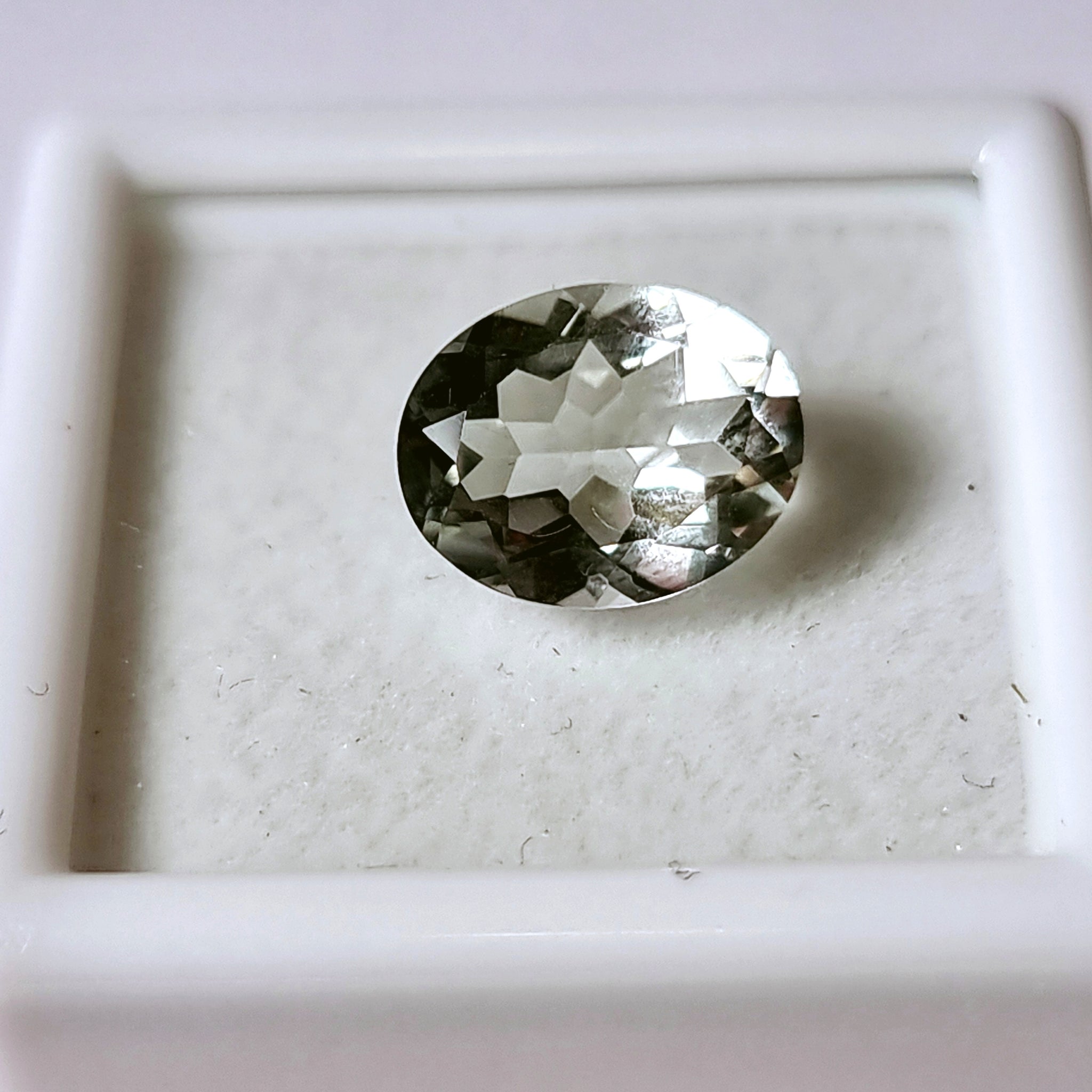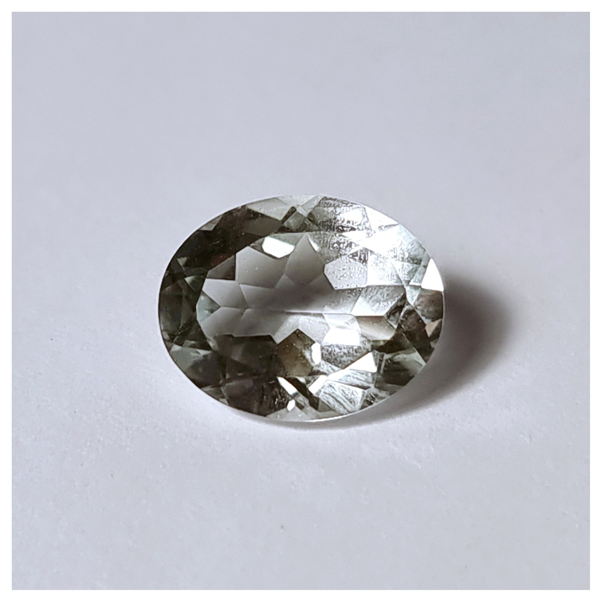 Bonita Prasiolita excelente pulido y colorOrigen: BrasilTallado y pulido en BarcelonaTalla: Facetado ovalMedida: 11'4x8'85x5mm