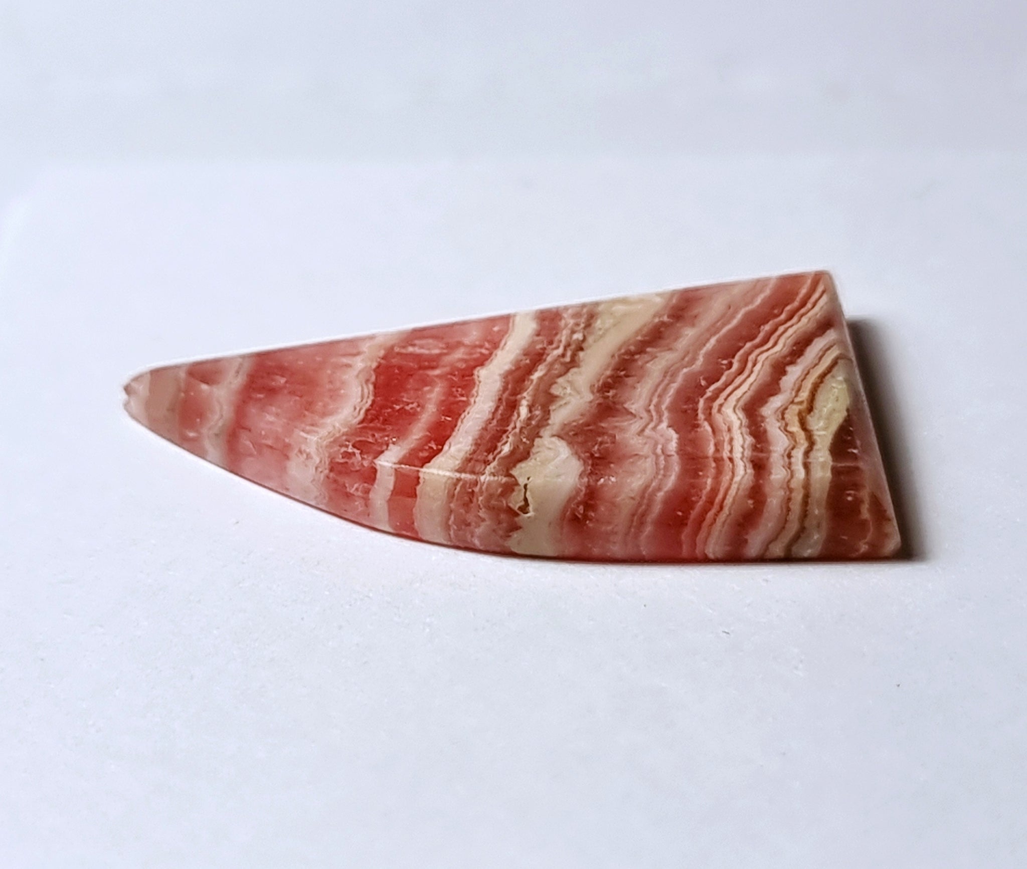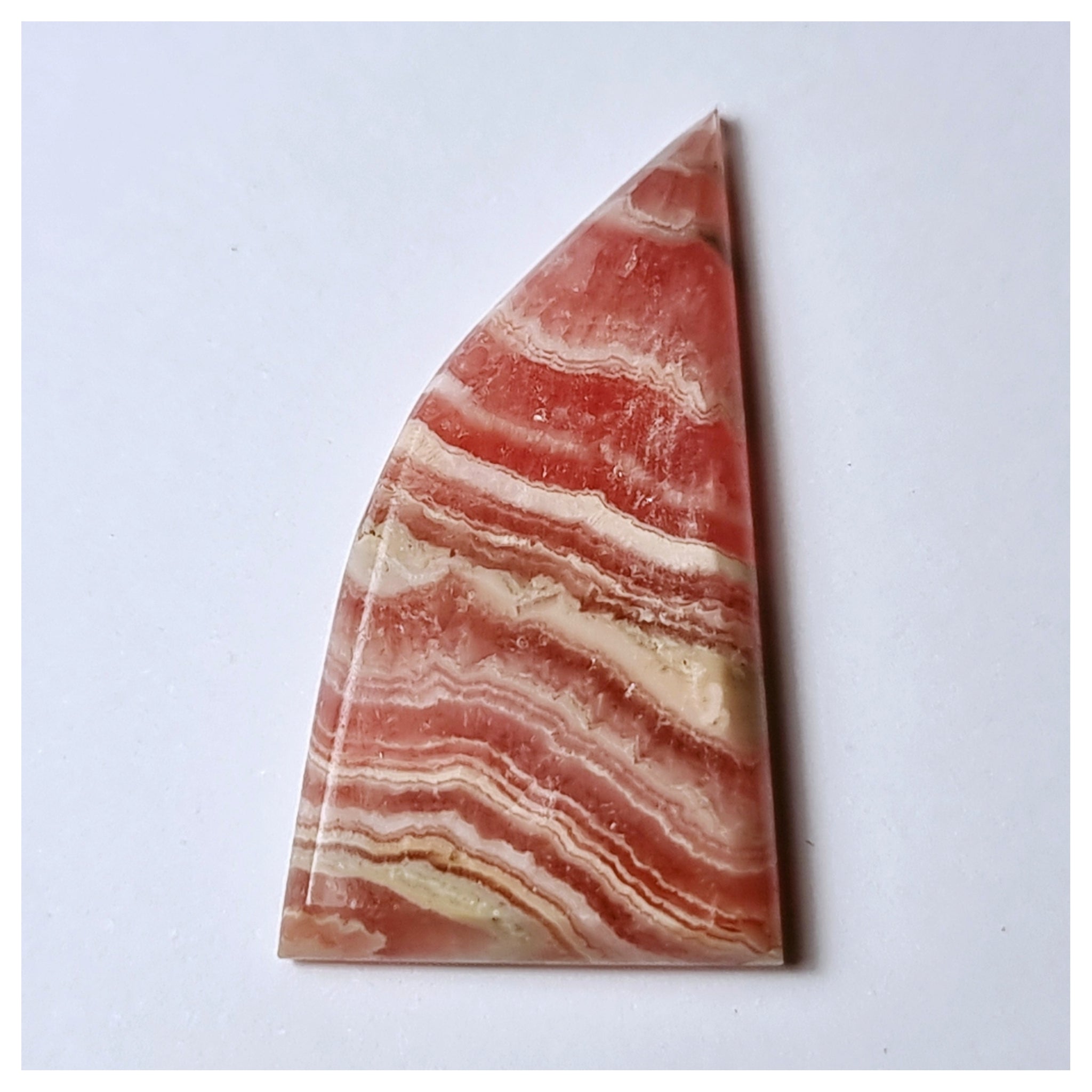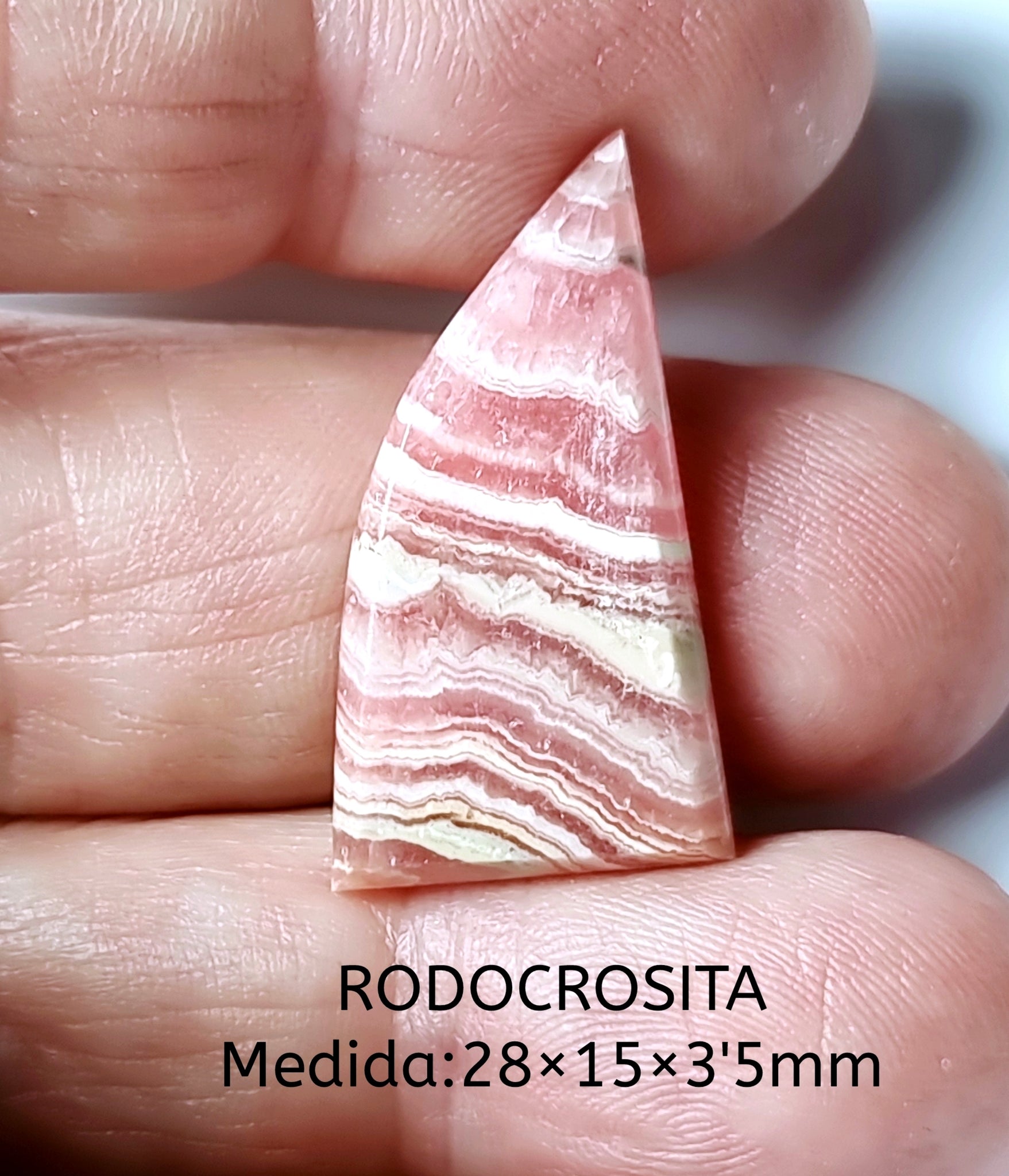 Bonito cabujón de Rodocrosita con un bonito dibujoOrigen: ArgentinaTallado y pulido en BarcelonaTalla: Cabujón fancyMedida: 28x15x3'5mm