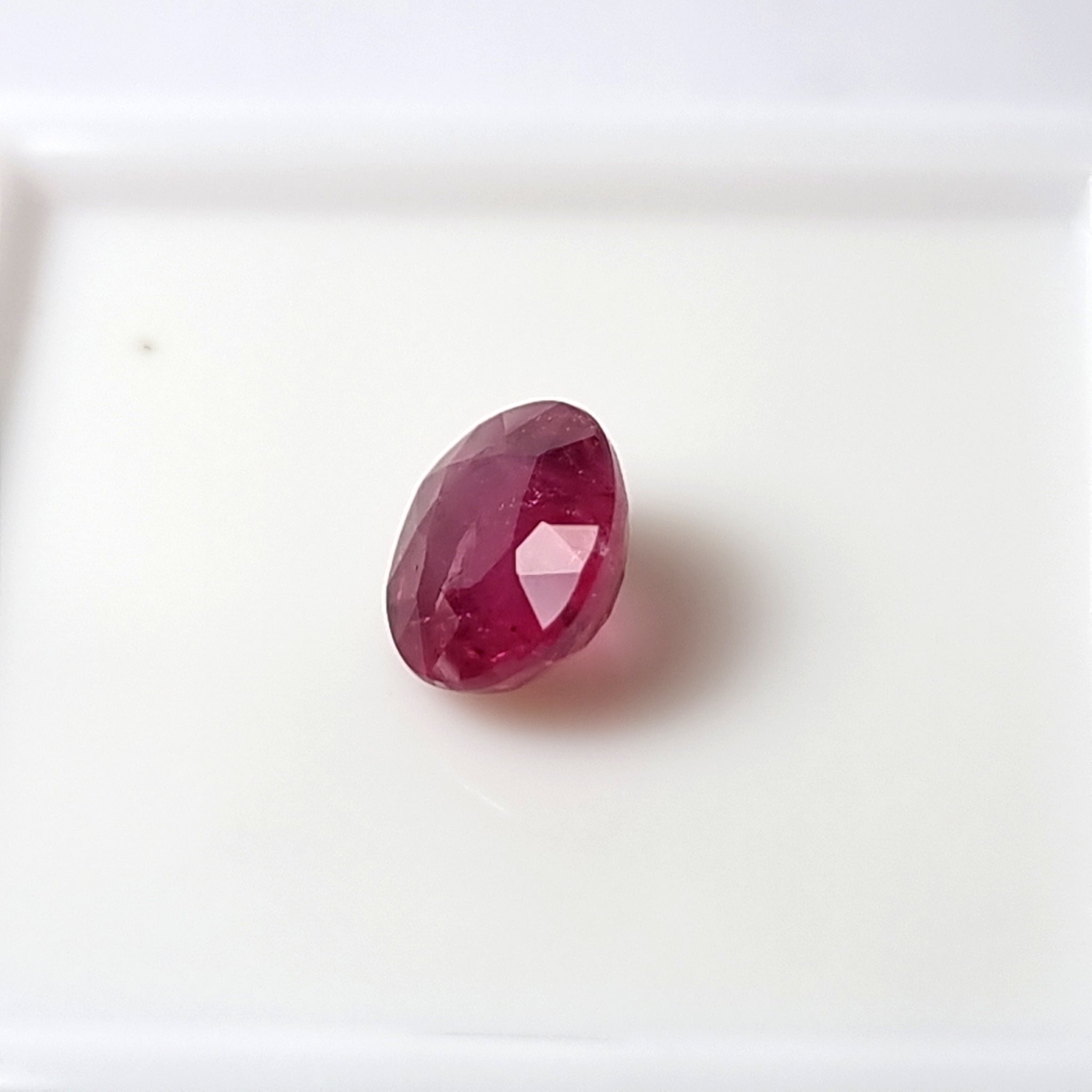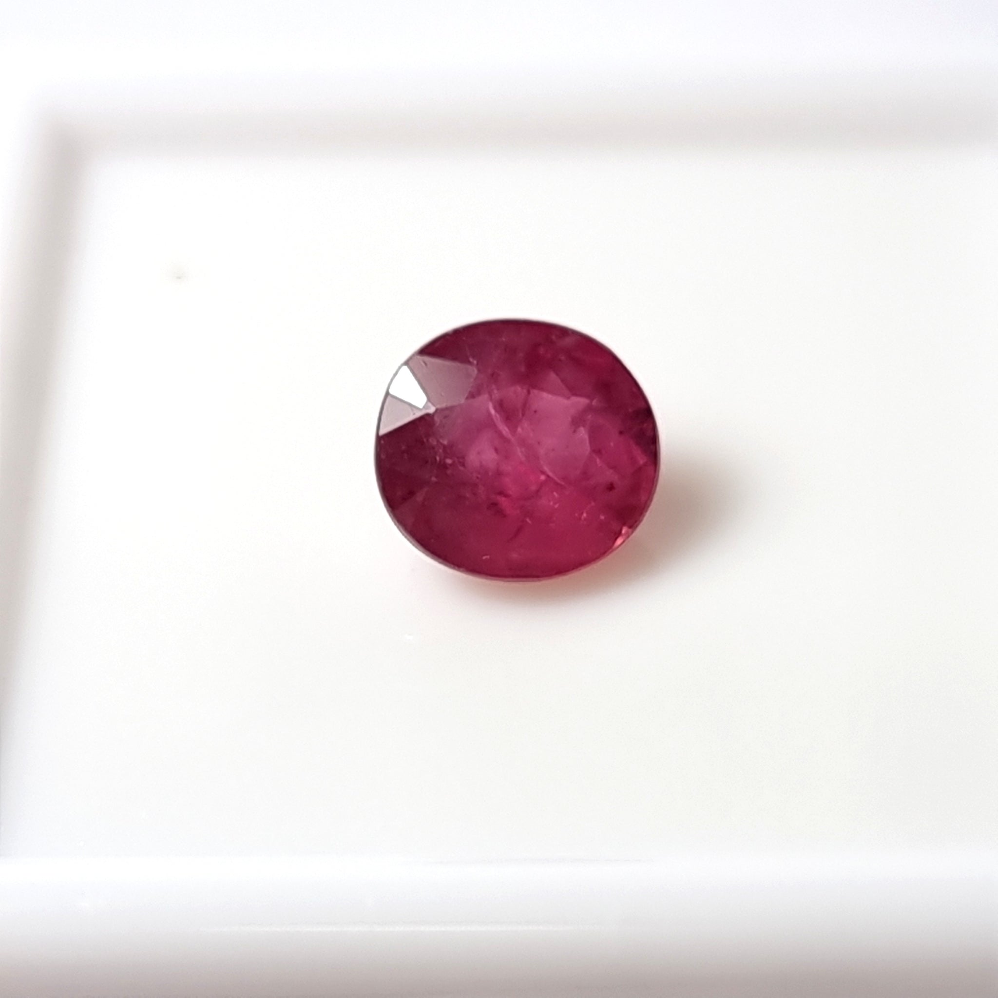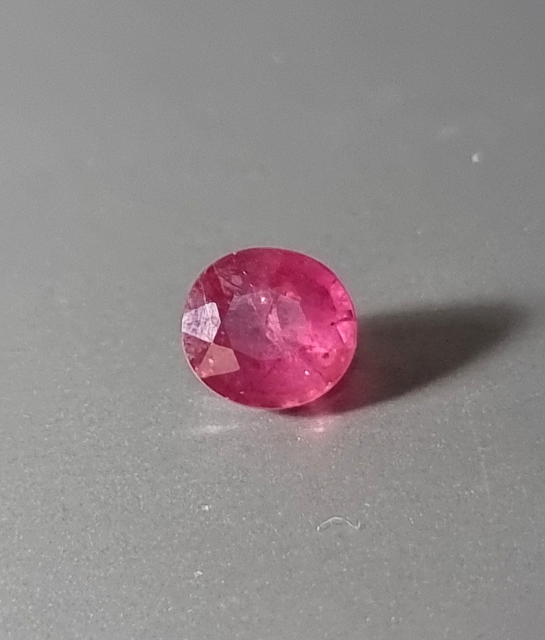 Precioso Rubí de color intenso e inclusiones naturales Origen: Tanzania Tallado y pulido en Barcelona Talla: Facetado oval Tratamiento: Calor suave Medida: 6'3x6'0x3'6mm
