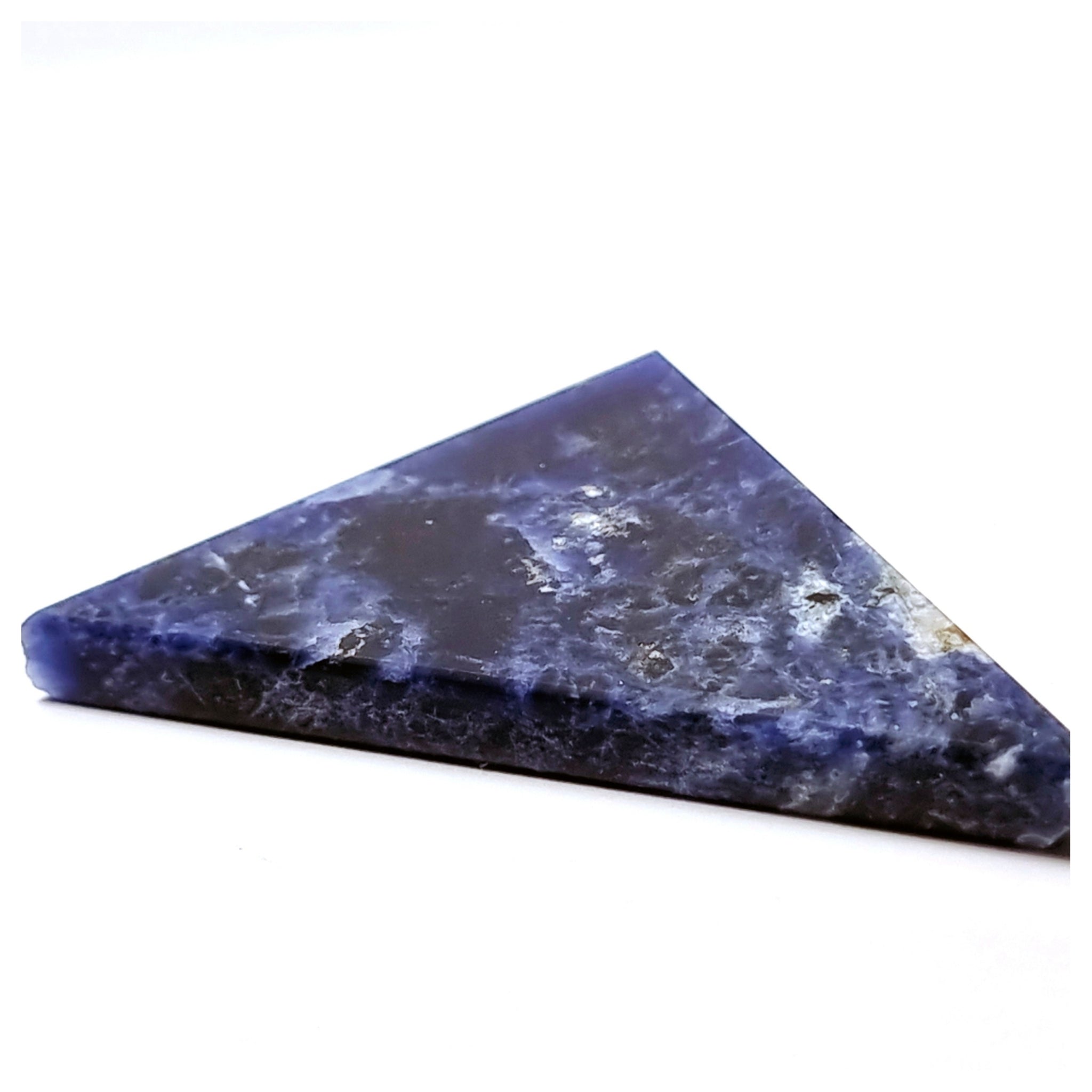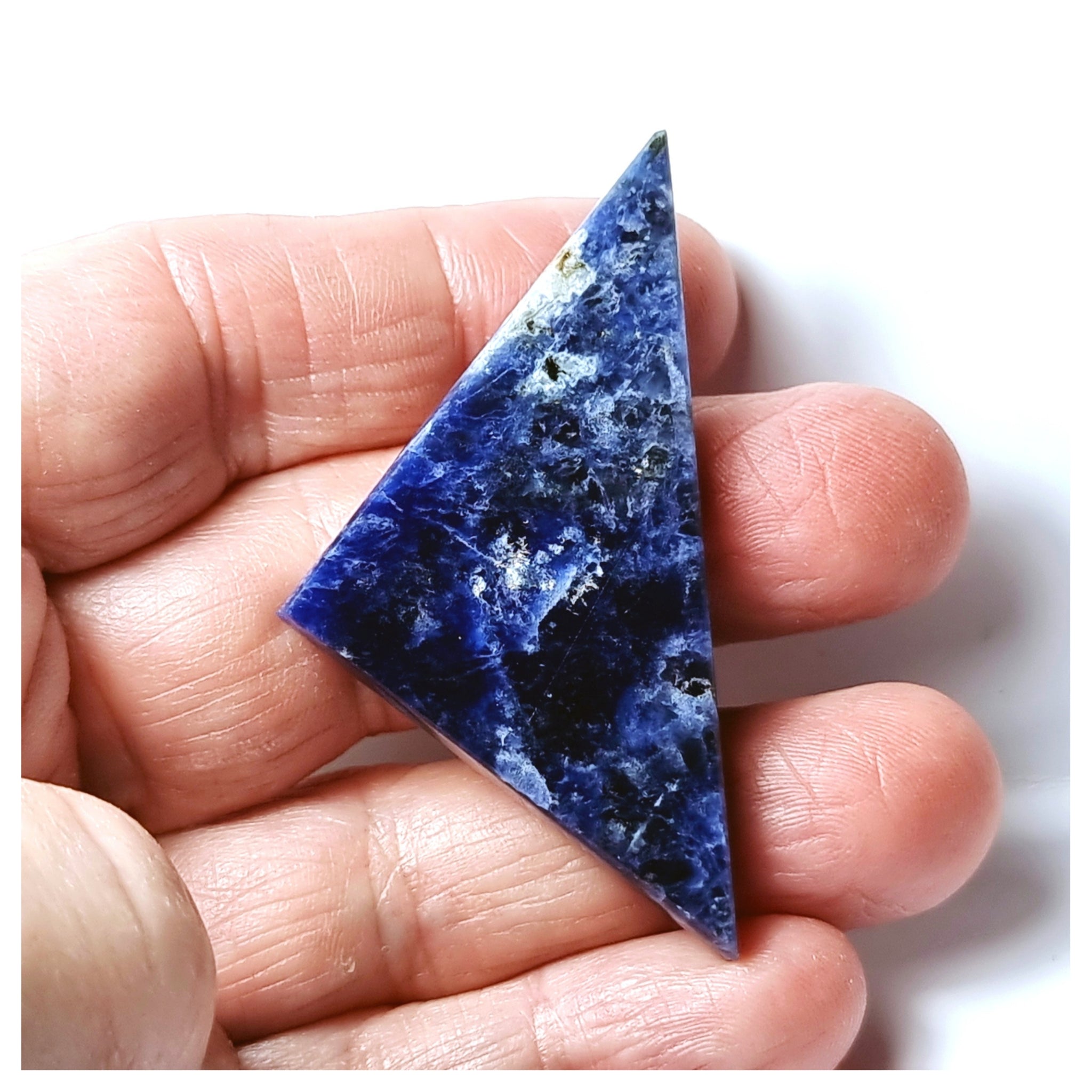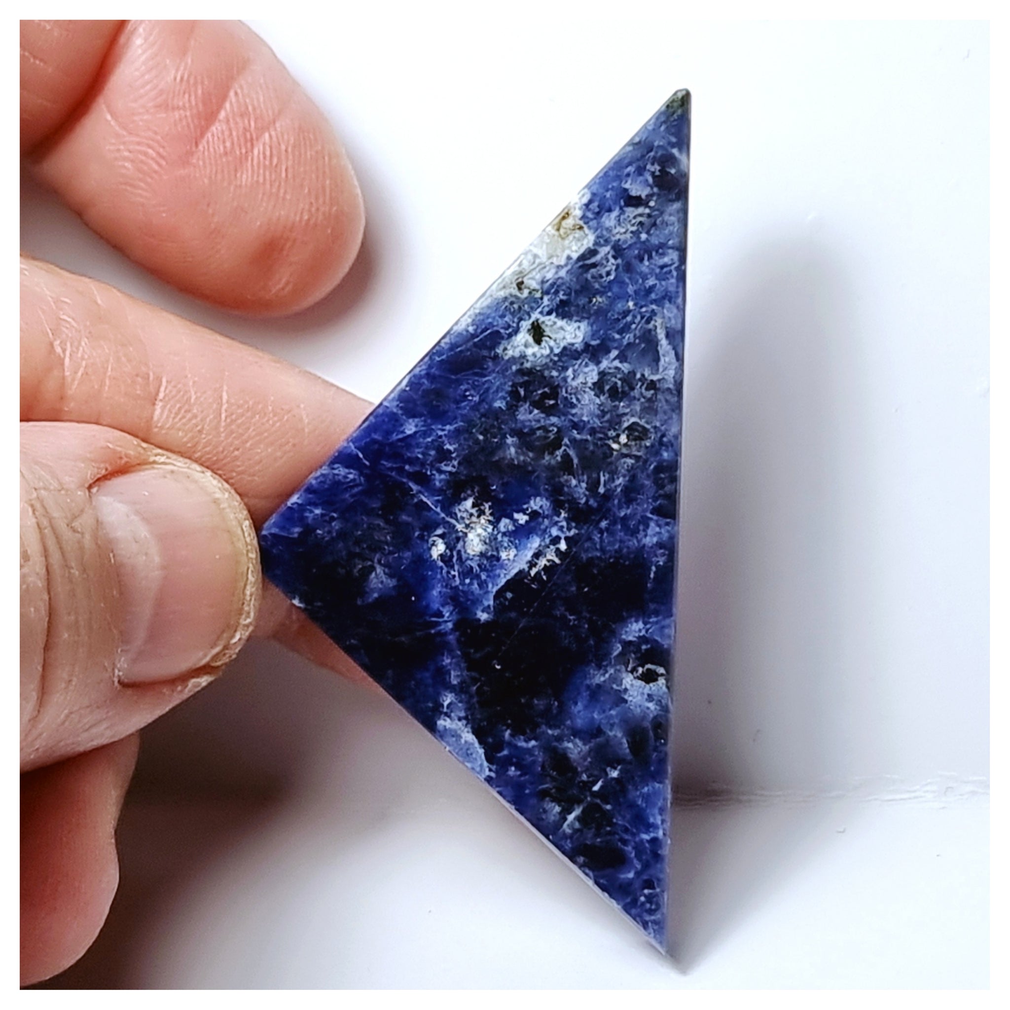 Fantástica Sodalita de excelente color y pulidoOrigen: BrasilTallado y pulido en BarcelonaTalla: Triángulo pulidoMedida: 57×43×6mm