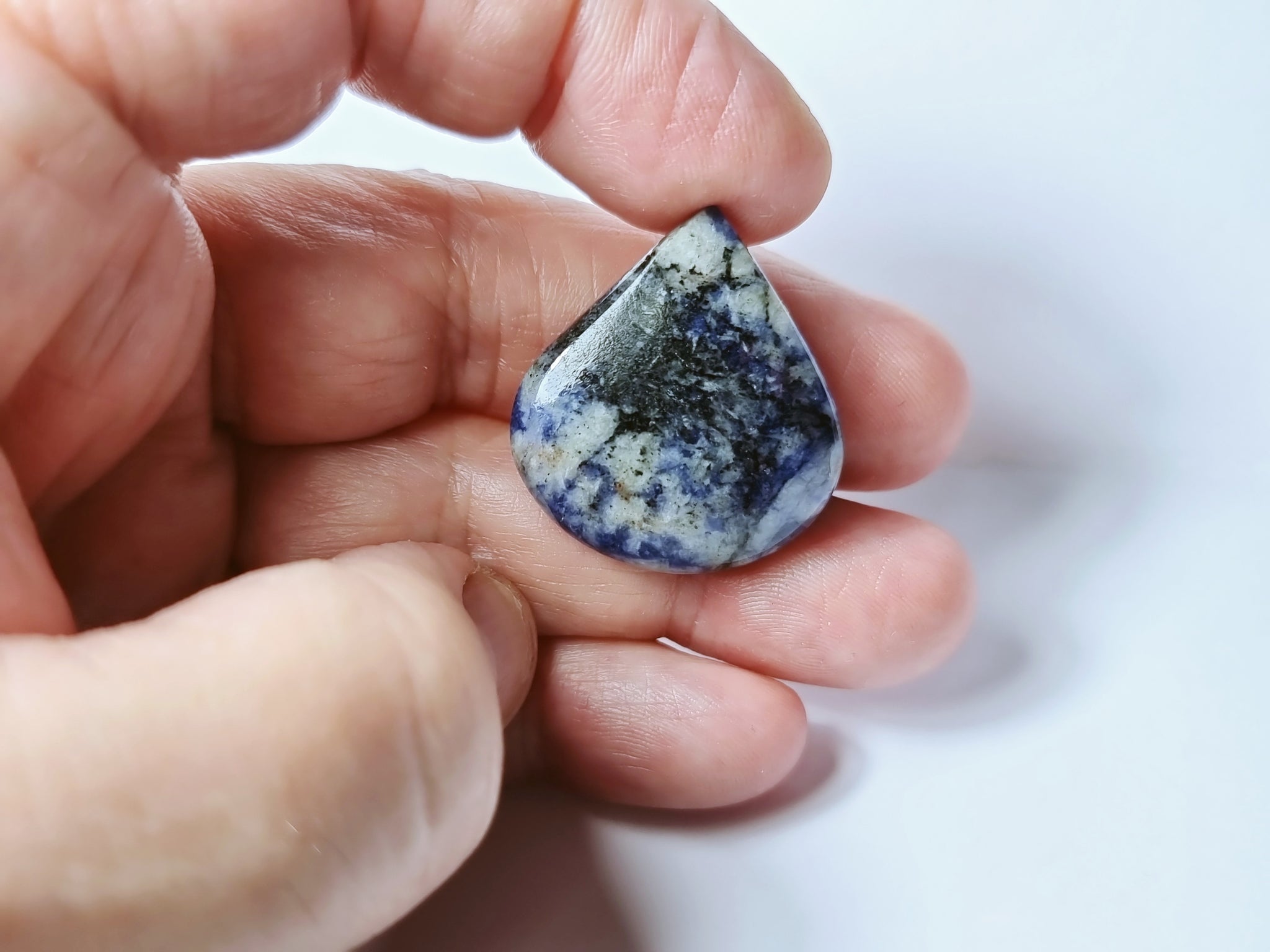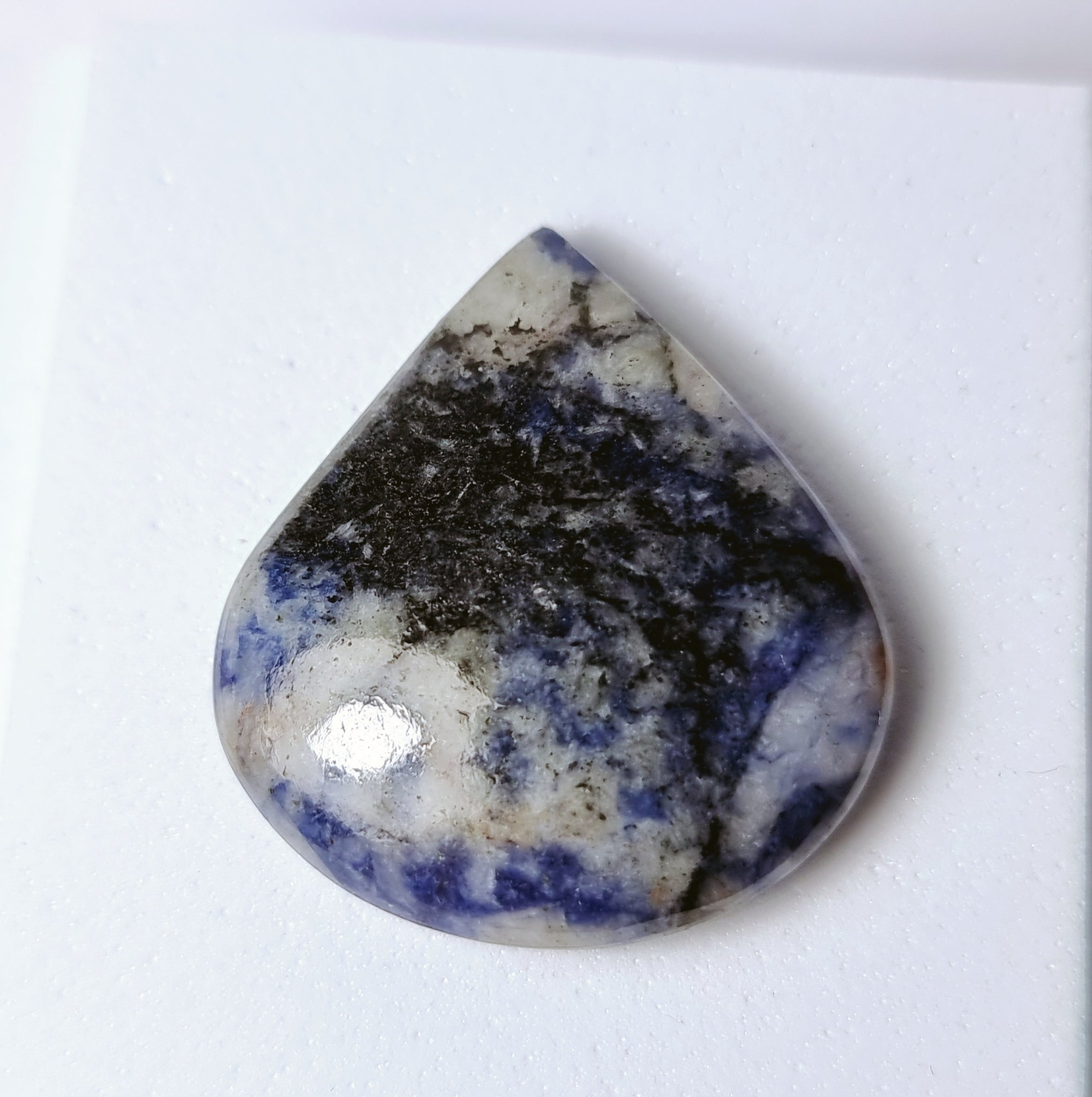 Fantástica Sodalita en tonos de azul, blanco y negro
