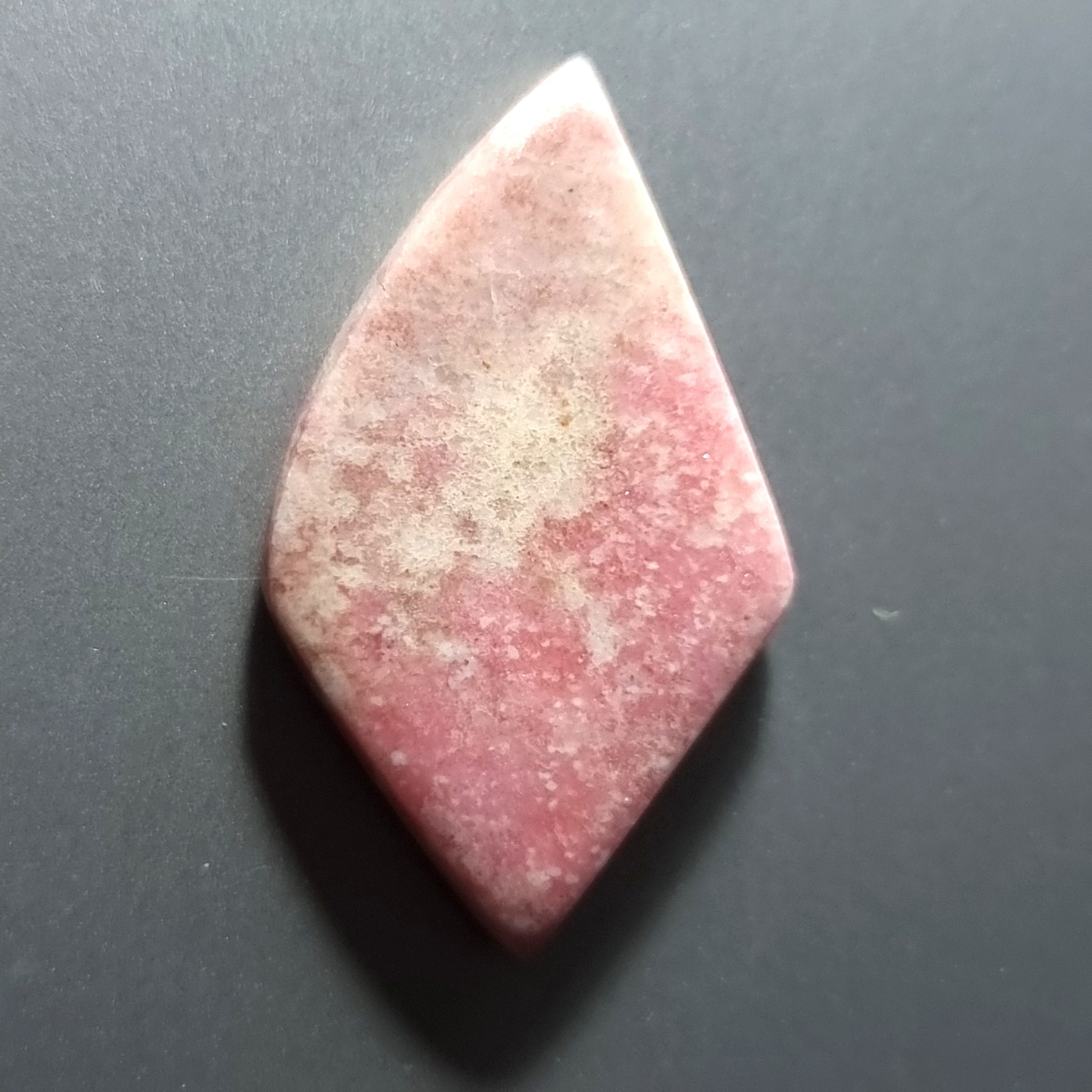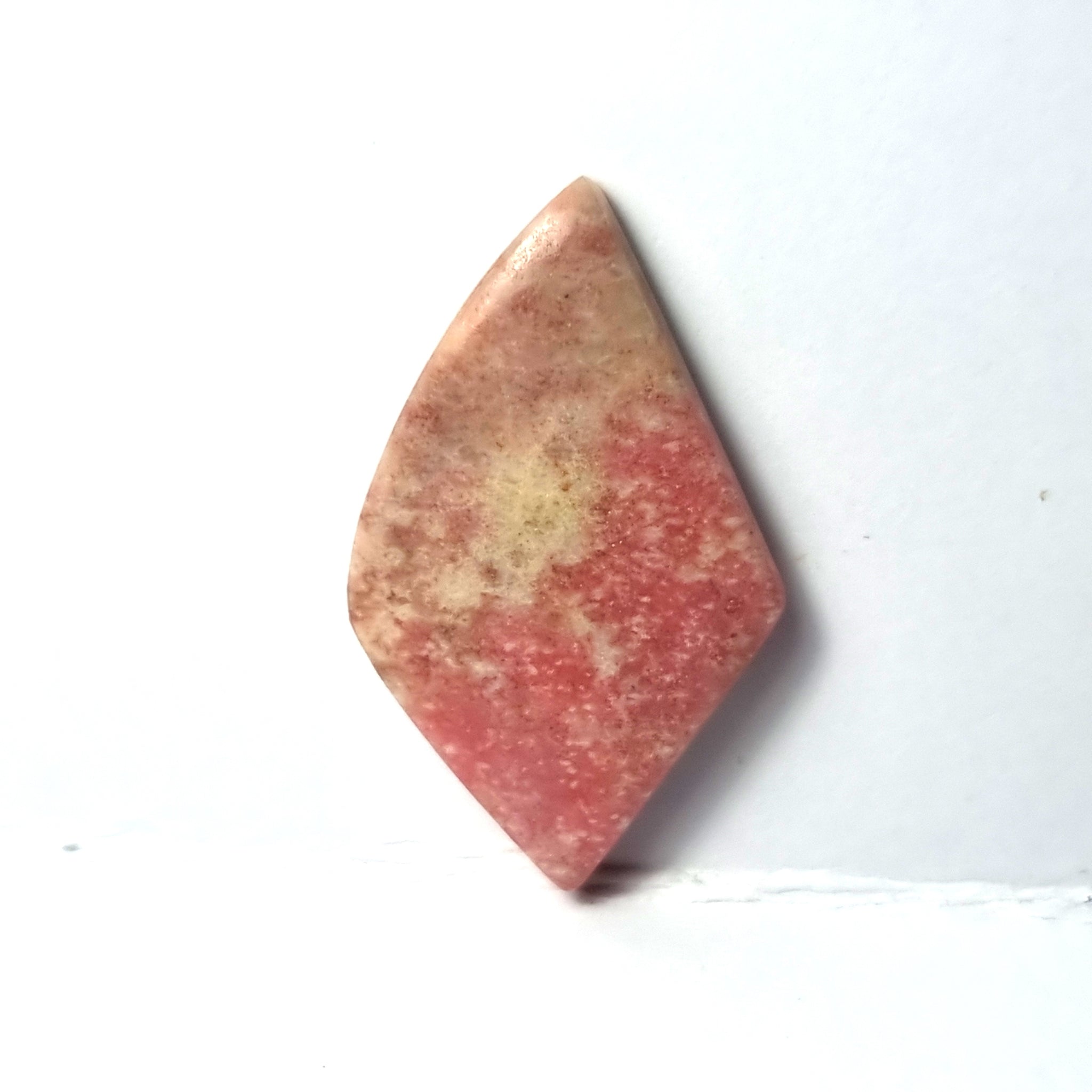 Bonito cabujón de Thulita de color y pulido excelentesOrigen: NoruegaTallado y pulido en BarcelonaTalla: Cabujón cometa irregularMedida: 29x17x4mm