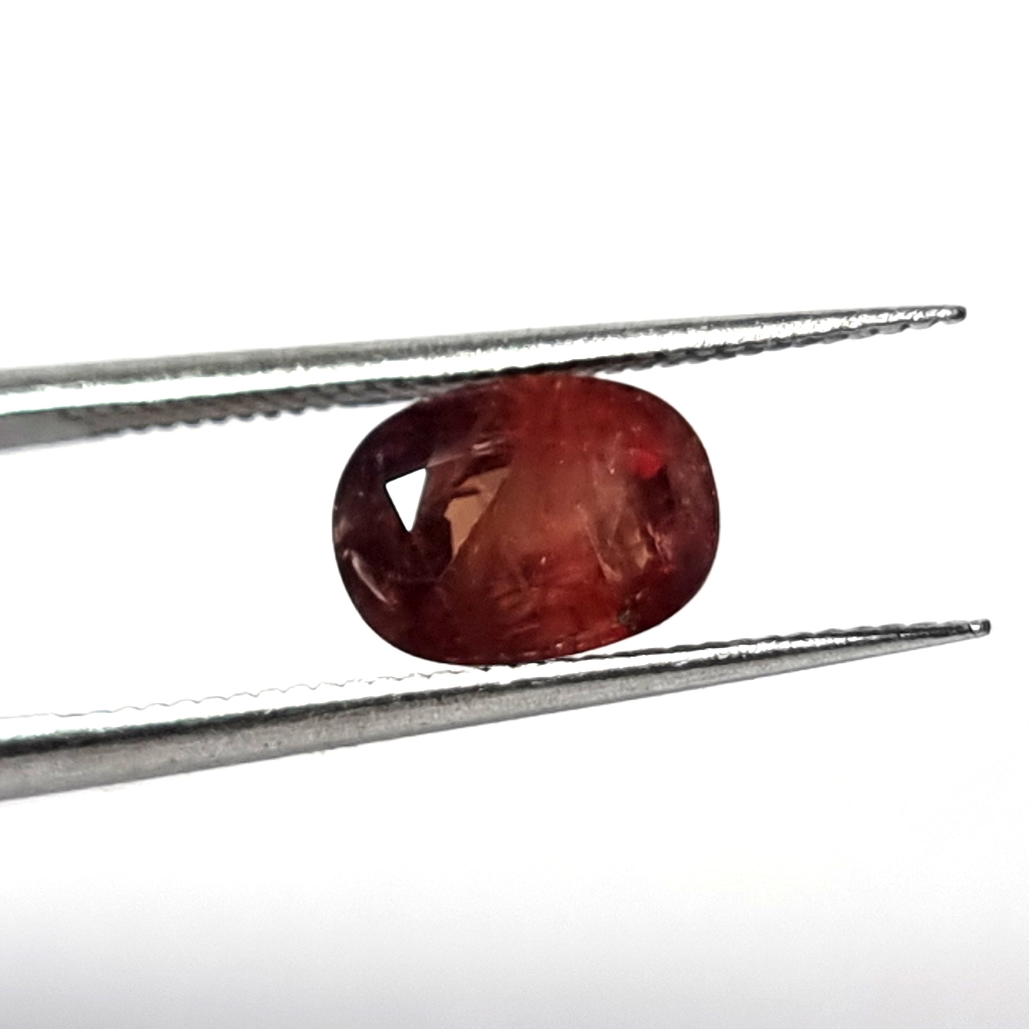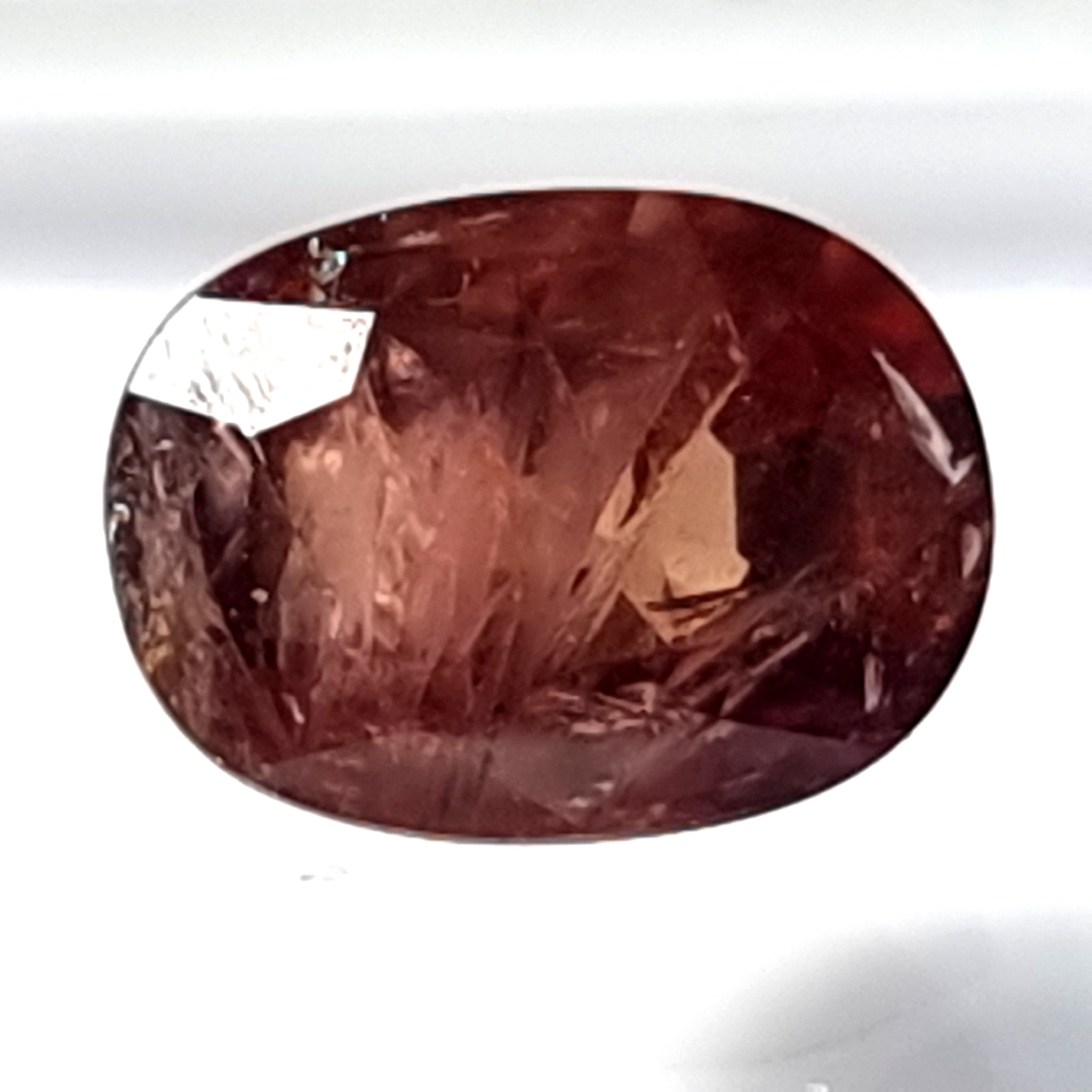 Original Zafiro de color marrón anaranjado, con inclusiones naturales Origen: Mozambique Tallado y pulido en Barcelona Talla: Facetado Medida: 8'5x6'0x4'4mm