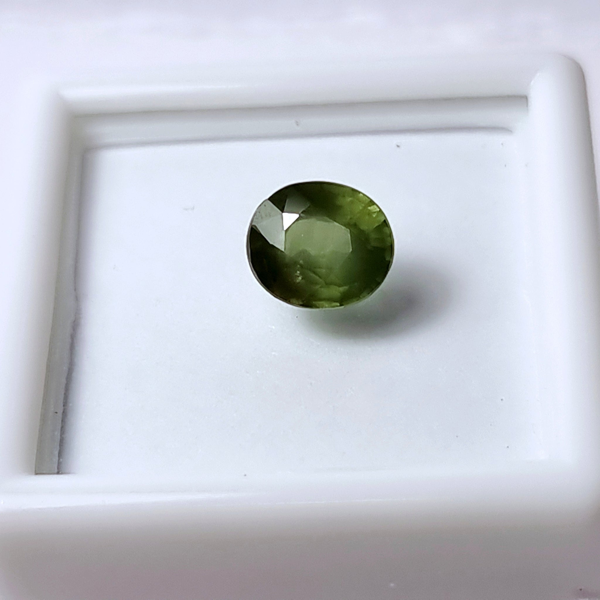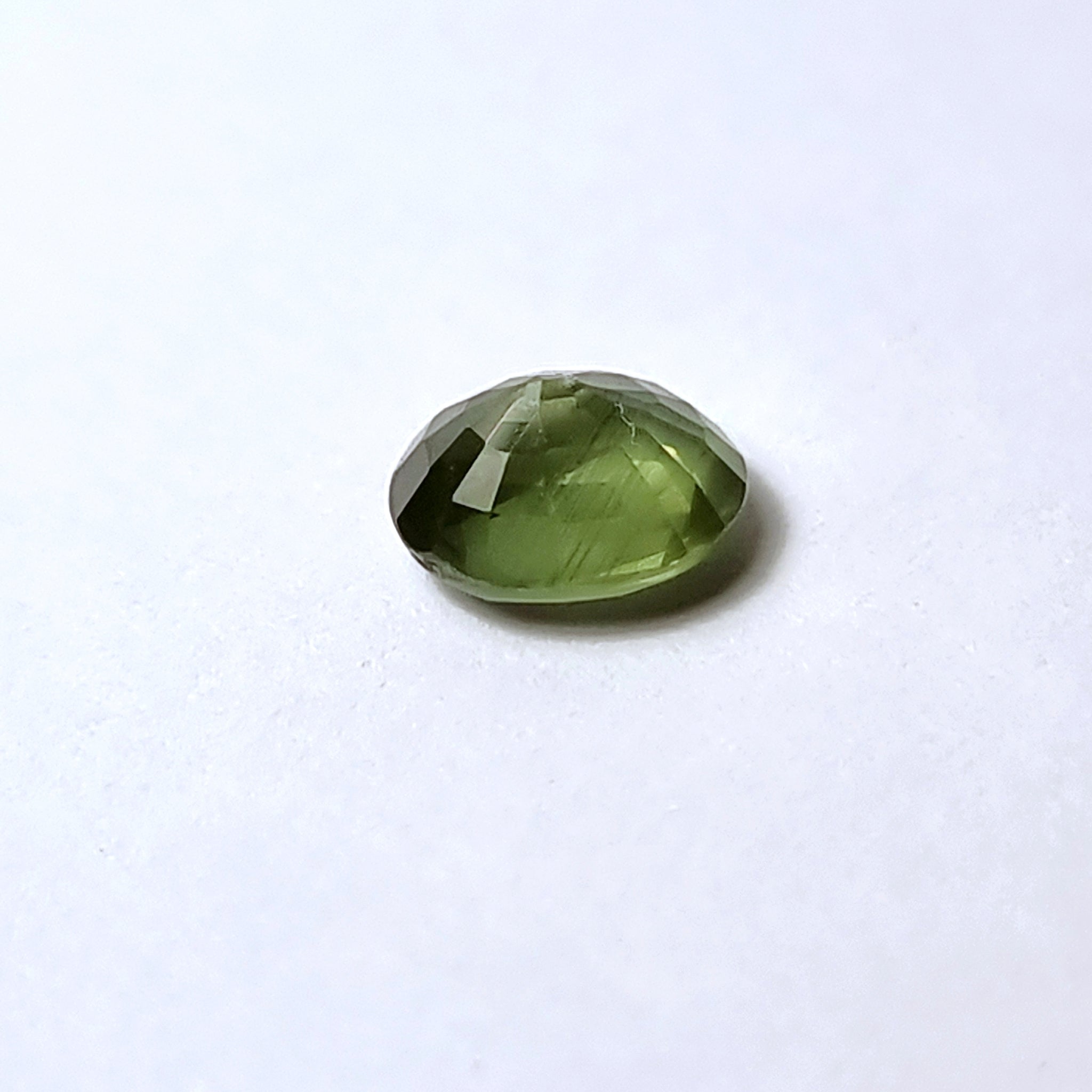 Precioso Zafiro verde de excelente colorOrigen: AustraliaTallado y pulido en BarcelonaTratamiento: Calor suaveTalla: Facetado ovalMedida: 7x6x4mm