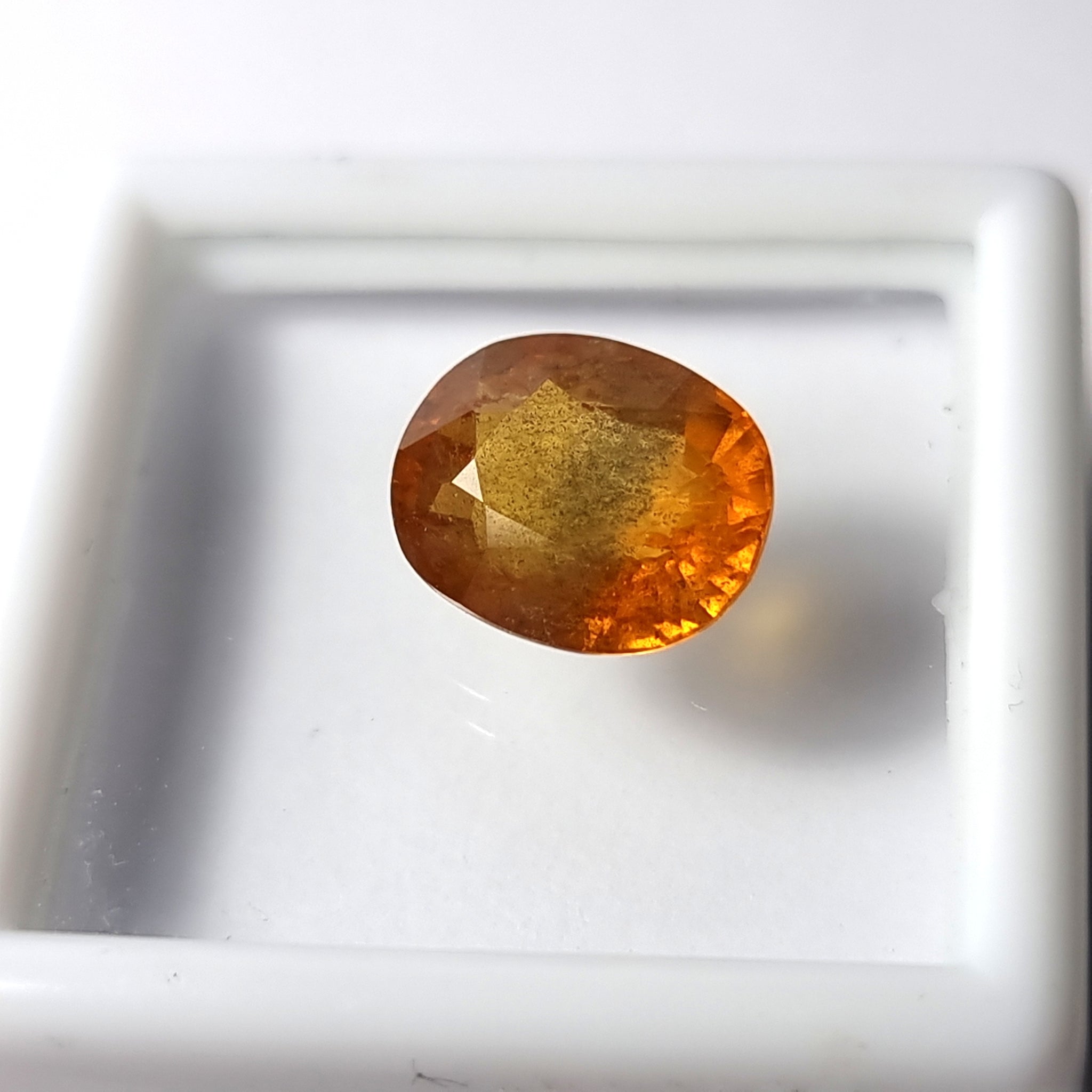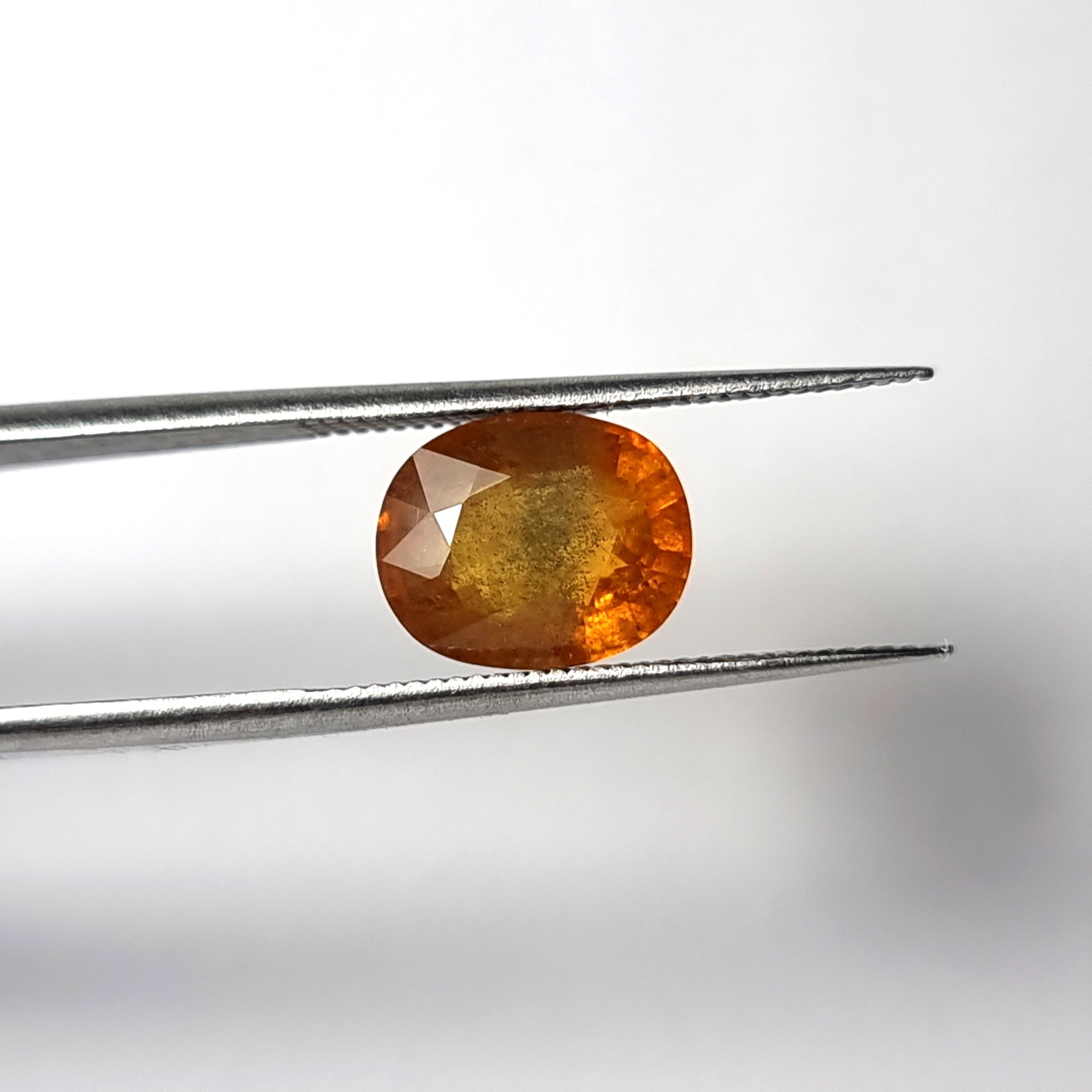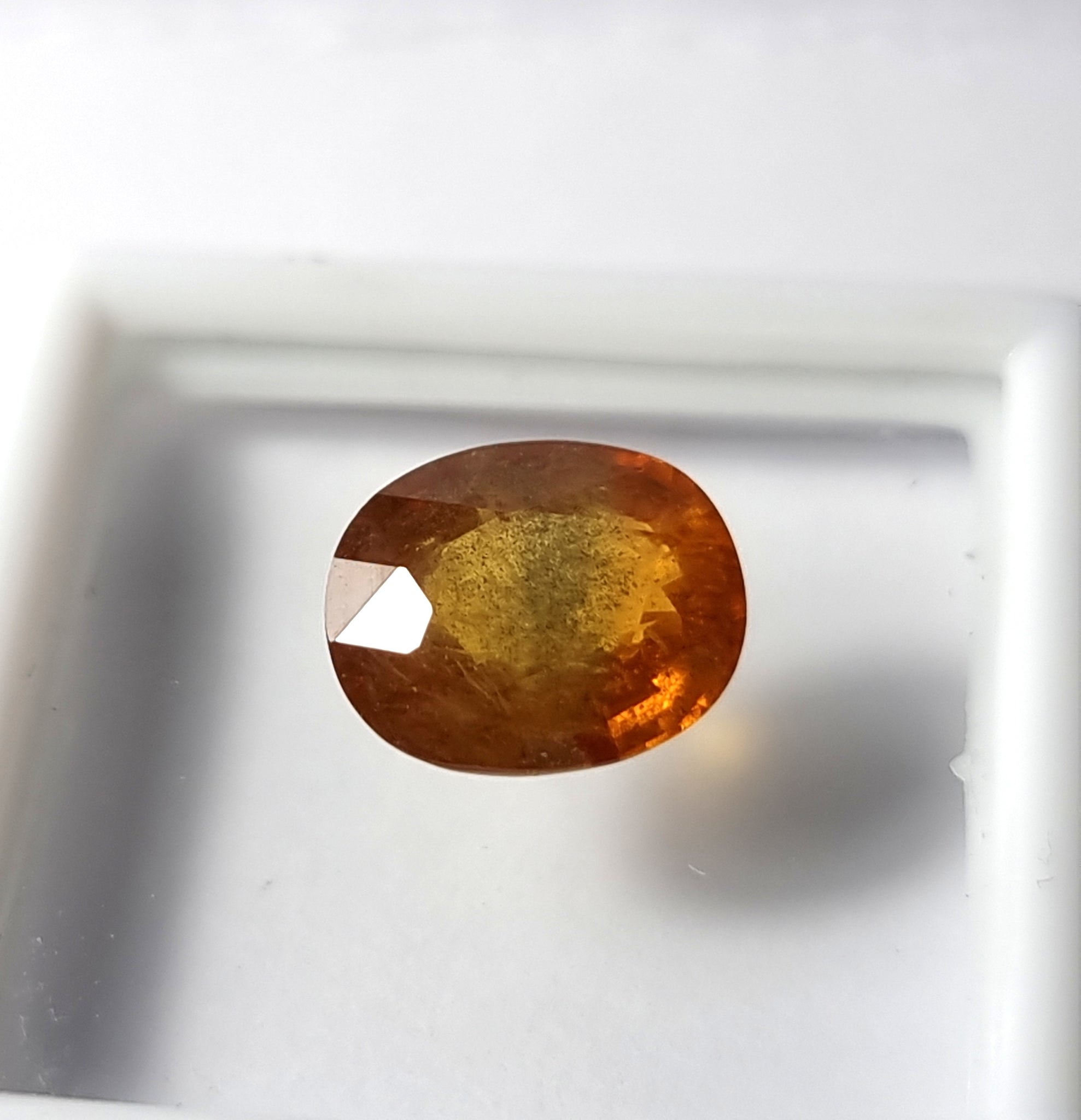 Original Zafiro naranja/amarillo con inclusiones naturales Tratamiento: Berilo Origen: Tanzania Tallado y pulido en Barcelona Talla: Facetado oval Medida: 10'0x8'0x4'8mm