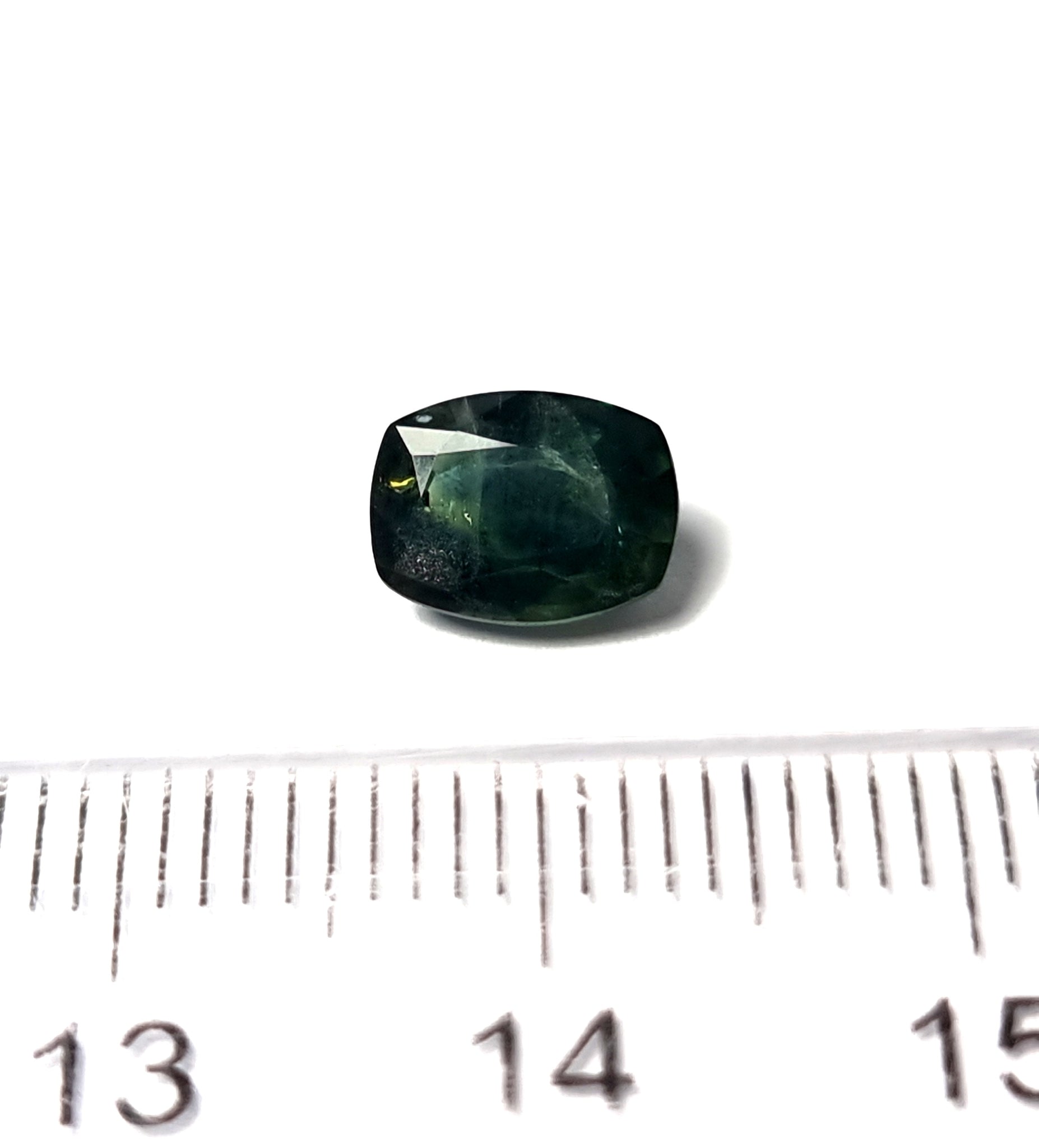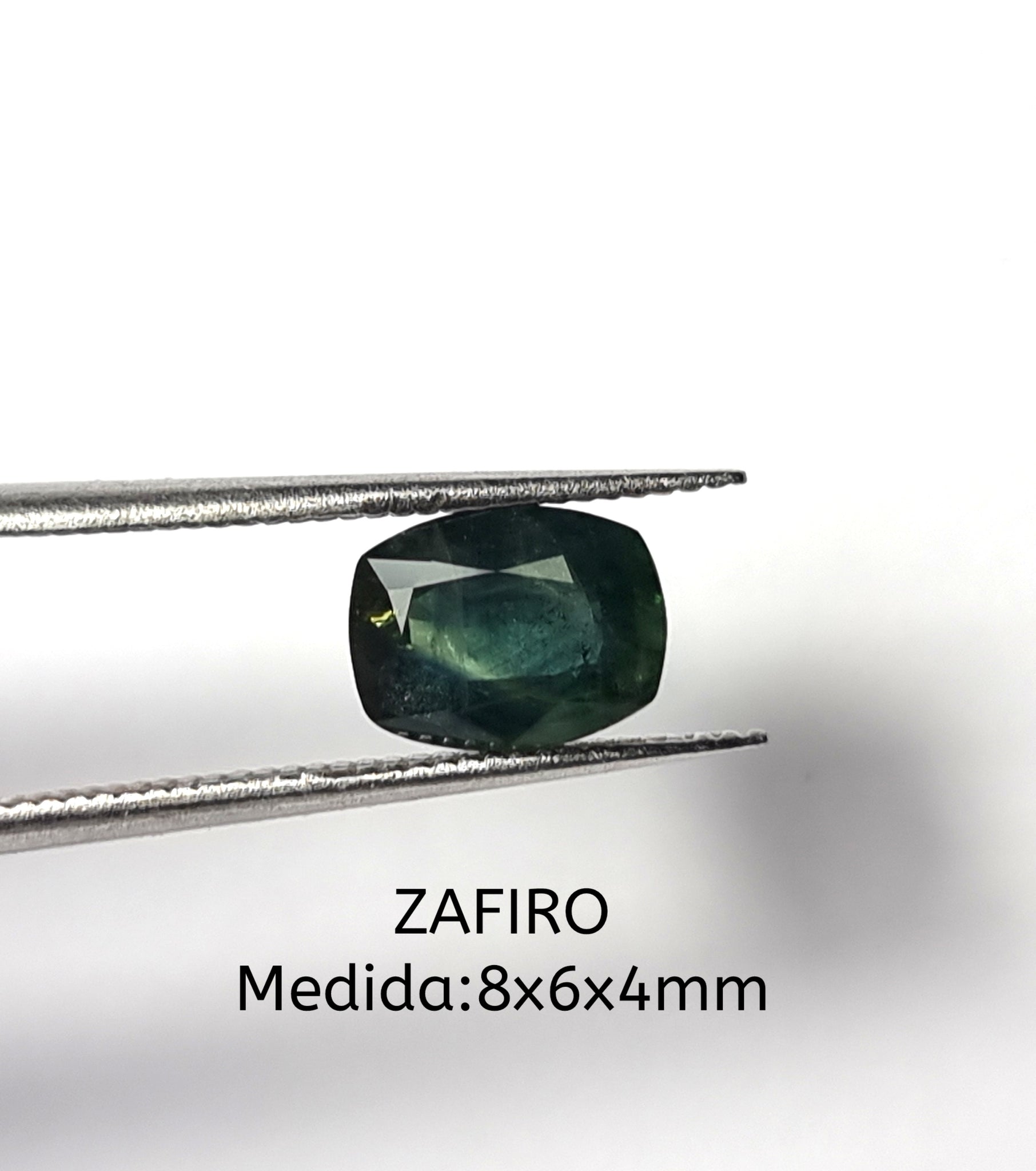 Original Zafiro verde oscuro con inclusiones naturales Tratamiento: Calor Origen: Australia Tallado y pulido en Barcelona Talla: Facetado fancy Medida: 8x6x4mm